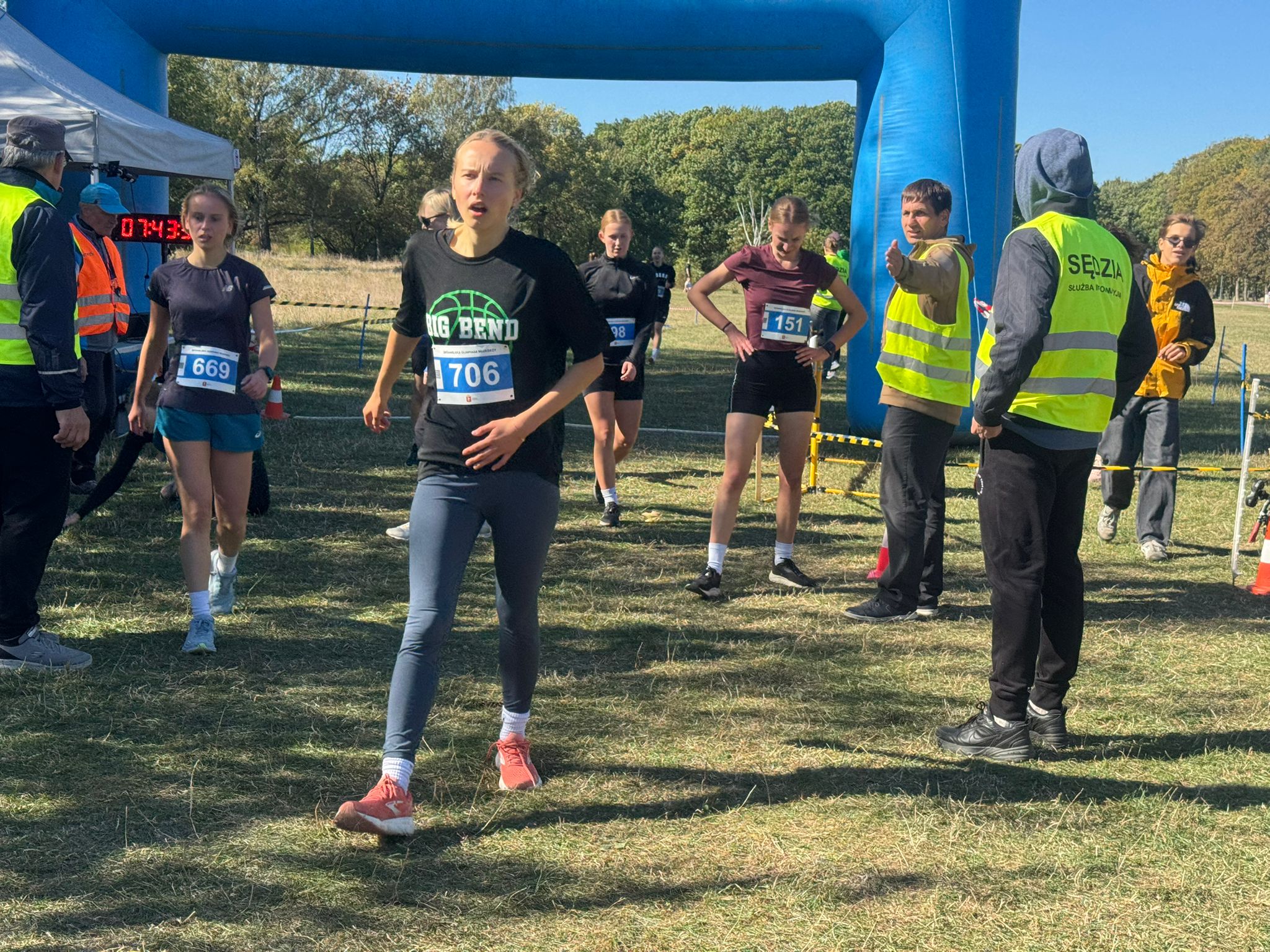 stawiła się na zawody, pełna energii, gotowa na wyzwania na trasach biegowych Pól Mokotowskich ??