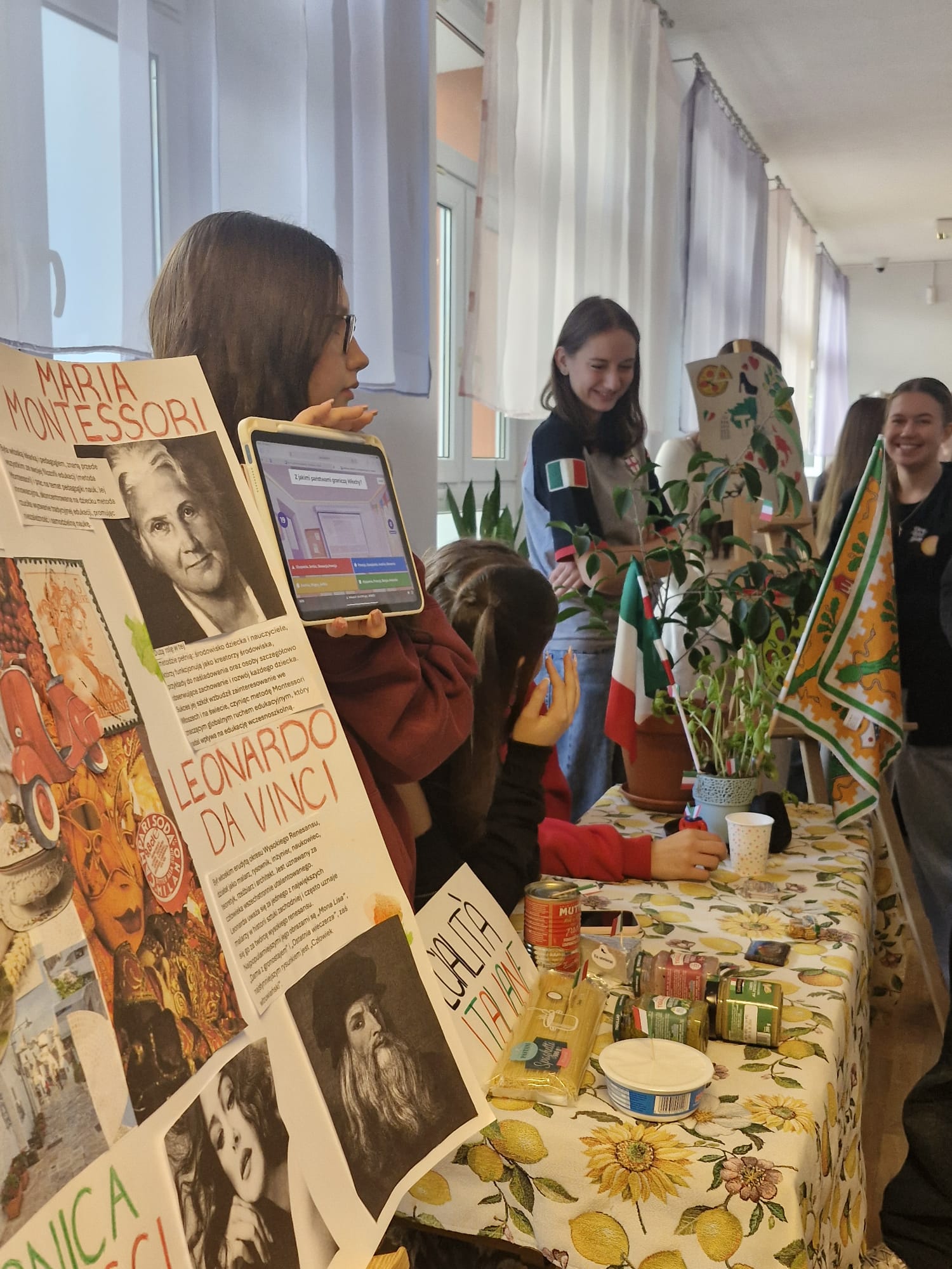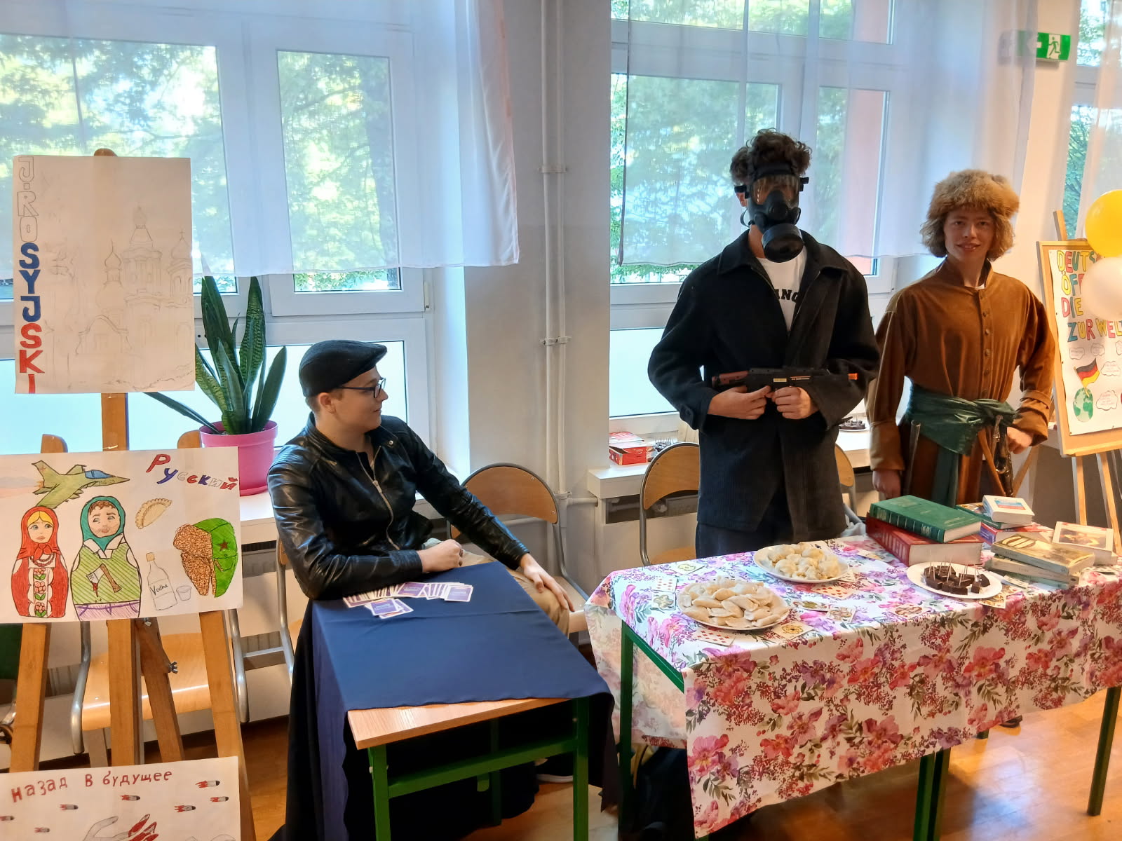 Dlatego wÅ‚aÅ›nie nasz szkolny korytarz zamieniÅ‚ siÄ™ w suche morze, po którym żeglowano od Wysp Brytyjskich, gdzie królowaÅ‚a herbata, przez GermaniÄ™ o smaku precli, serowo-bagietkowÄ… FrancjÄ™, peÅ‚nÄ… smakowitych tapas HiszpaniÄ™ po sÅ‚onecznÄ… ItaliÄ™ a nawet pachnÄ…cÄ… Å›wieżo gotowanymi pierogami RosjÄ™. Smakowano wiÄ™c EuropÄ™ na sÅ‚odko i sÅ‚ono, a dopeÅ‚nieniem smaków byÅ‚a możliwość poznania kultury każdego z krajów. UwagÄ™ zwiedzajÄ…cych przyciÄ…gali sÅ‚awni WÅ‚osi, wybitni rosyjscy pisarze i ich dzieÅ‚a czy muzyka z danego zakÄ…tka. Każdy mógÅ‚ spróbować swoich siÅ‚ w różnych konkursach tematycznych zwiÄ…zanych z historiÄ…, geografiÄ… czy kulturÄ… kraju.