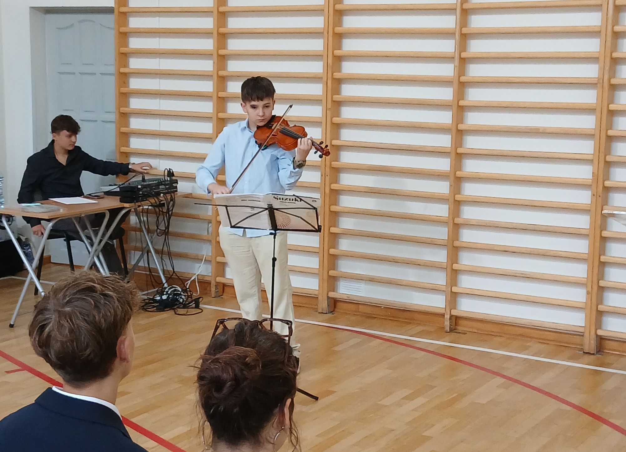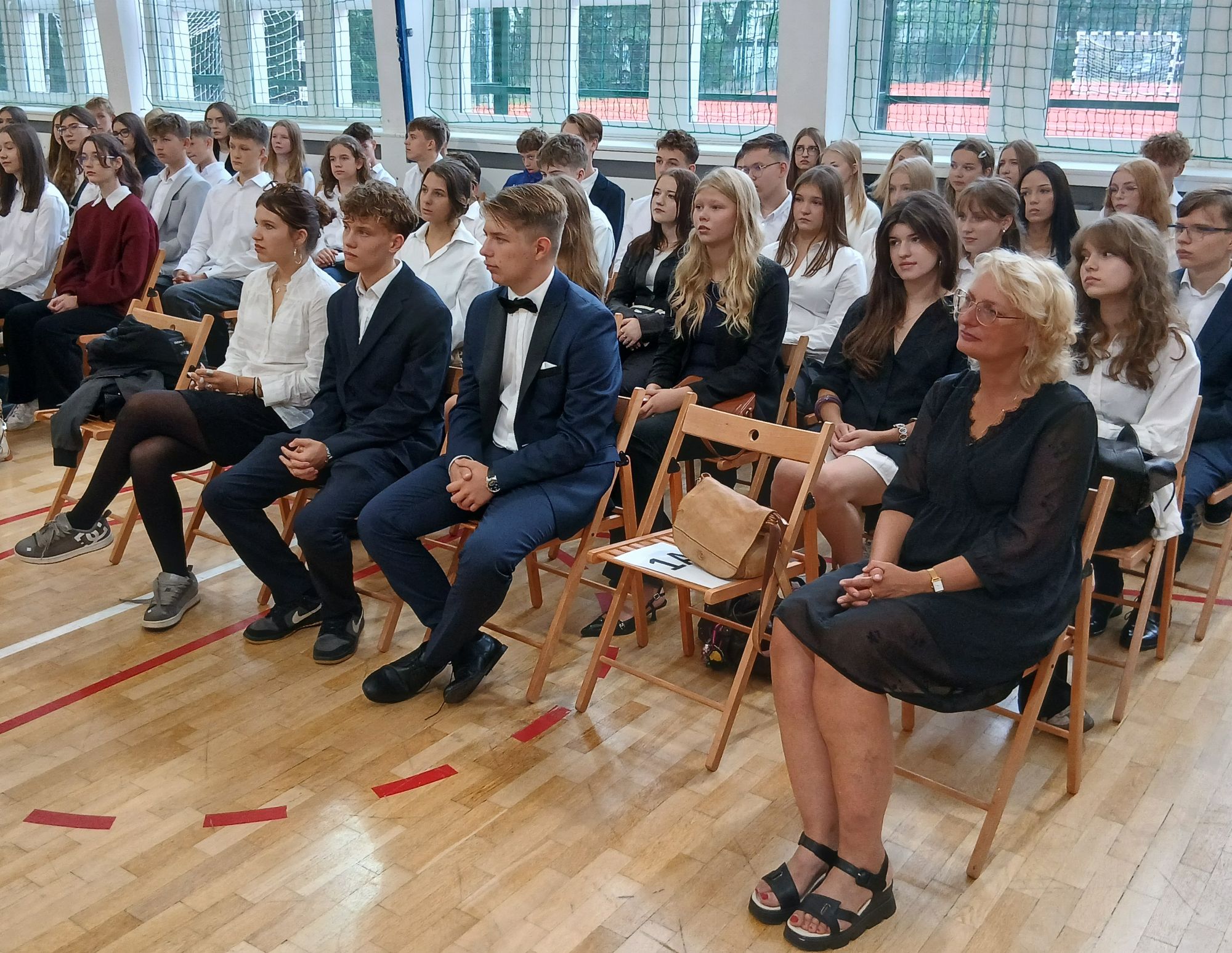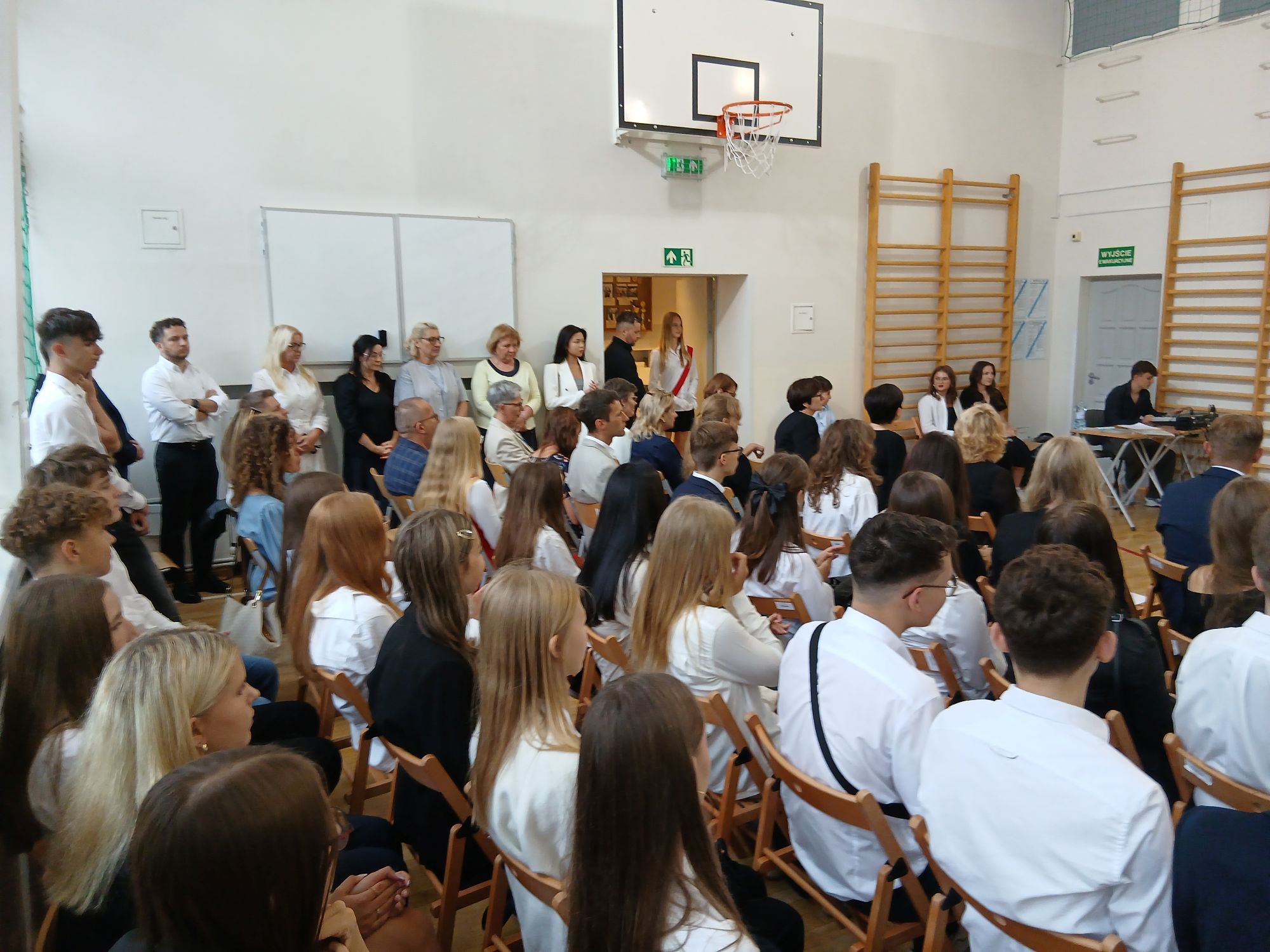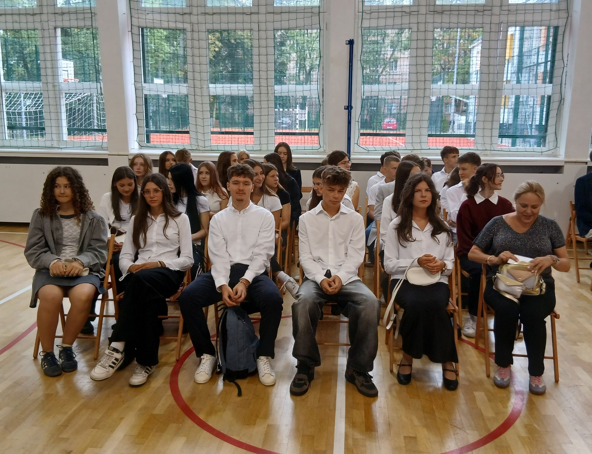 W krótkim programie artystycznym przygotowanym przez klasę II A pod opieką wychowawczyni pani prof. Anity Widman-Drzewieckiej Pierwszoklasiści poznali też swoich Wychowawców, wsłuchali się w nostalgiczne dźwięki skrzypiec Bartka i nastrojowy głos Uli, która wyśpiewała piękne frazy "Hymnu" J. Słowackiego popularyzowane dziś w repertuarze Sanah.