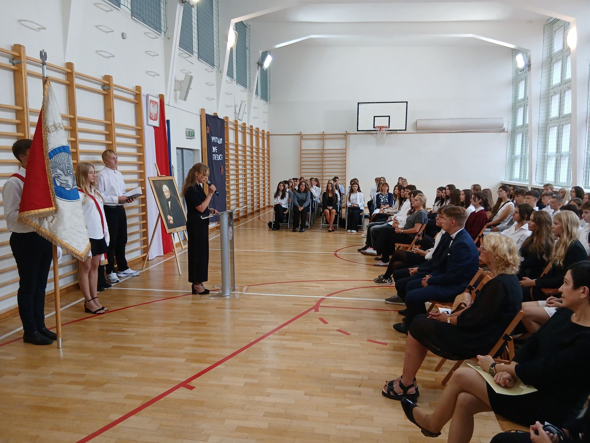 Stąd właśnie bierze się nasz smutek, ale jest też i radość, radość spotkania z nowymi uczniami naszego Liceum. Jak zaznaczyła Pani Dyrektor, trzy klasy w tym roku rozpoczynają naukę w LXXXI Liceum Ogólnokształcącym im. A. Fredry. Dla nowych uczniów to nowe otwarcie, nowe nadzieje i nowe możliwości. I choć na początek są drobne obawy, to przecież przyszli tutaj pełni wiary, że pomożemy im wykorzystać potencjał jaki mają. Aby tak się stało, trzeba zaangażować się i w naukę i w budowanie relacji, bo to ważne fundamenty w rozwoju osobistym.