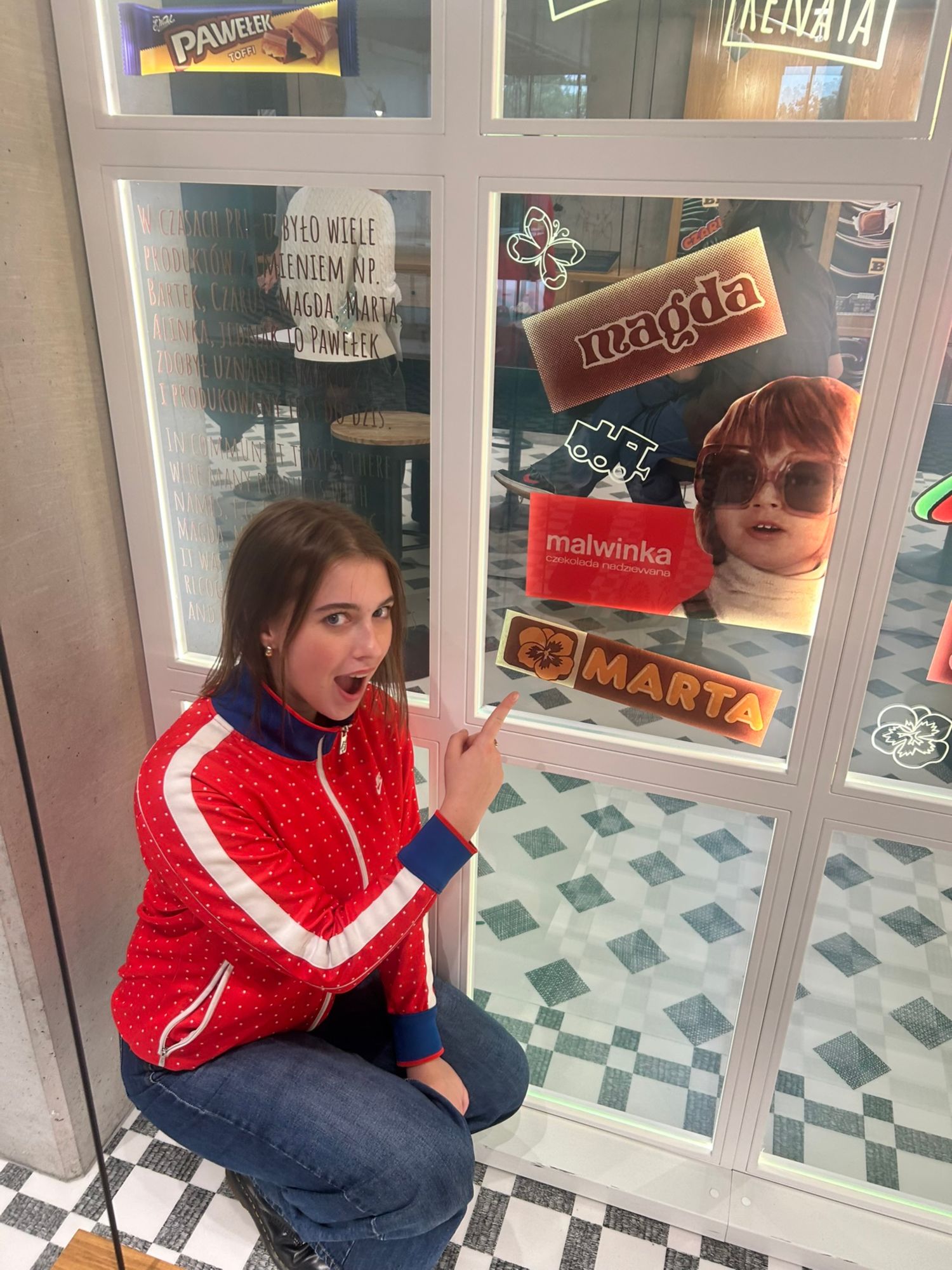 Poznaliśmy również historię pochodzenia kakao i jego przygotowanie do dalszego wytwarzania czekolady. Zwiedziliśmy piękne i nowoczesne sale poświęcone czekoladzie, Ptasiemu Mleczku i innym wyrobom Wedla. Zachwyciła nas czekoladowa rzeźba, przedstawiająca otaczający budynek Grochów. Wieloletnia tradycja i miłość do słodkości, była wyczuwalna, niczym zapach czekolady unoszący się wokół budynku. Przyjrzeliśmy się również, dawnym i kolekcjonerskim opakowaniom słodyczy.