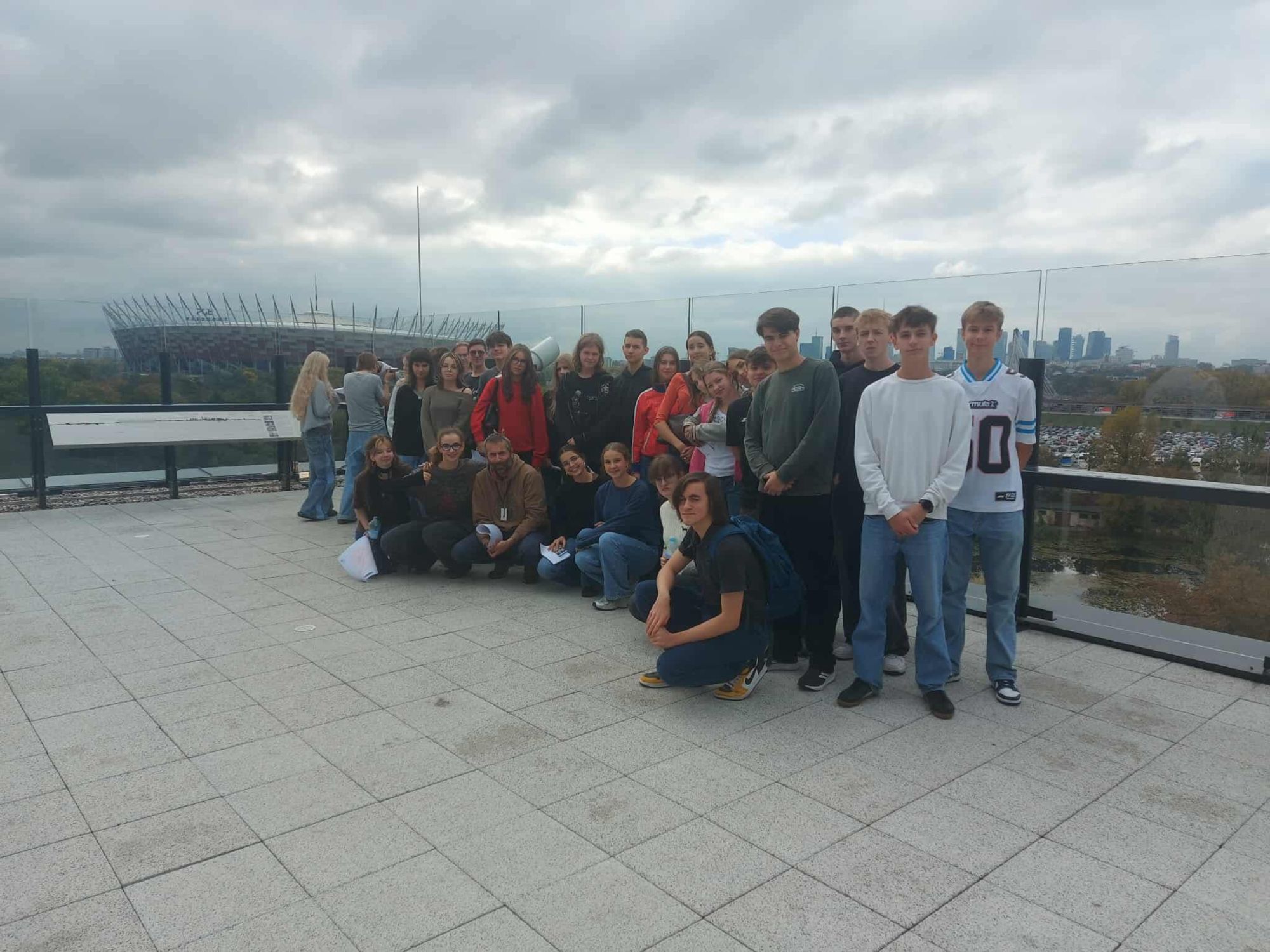 Wycieczkę zakończyliśmy na tarasie widokowym, z którego mogliśmy obserwować panoramę Warszawy. Żegnając naszego przewodnika, podsumowaliśmy wyjście pytaniem: „szukacie pracowników?”