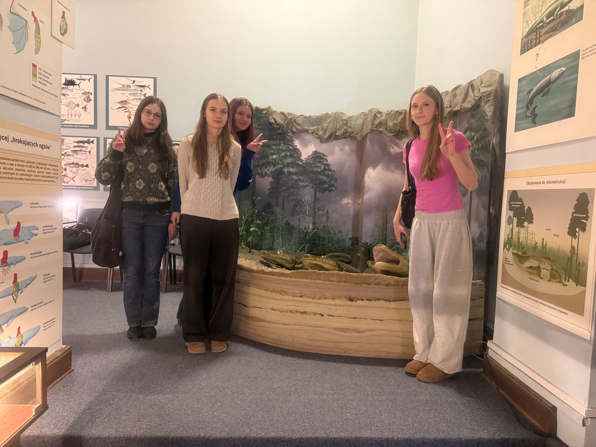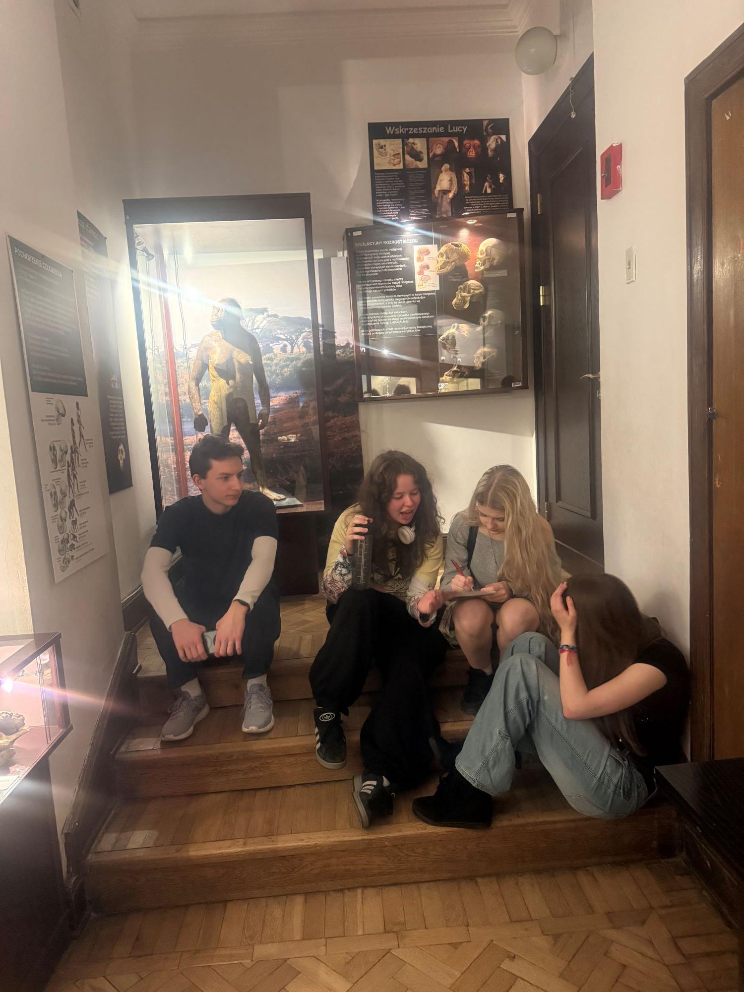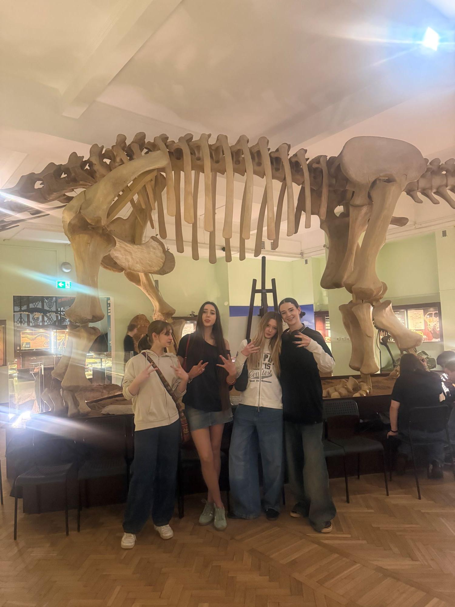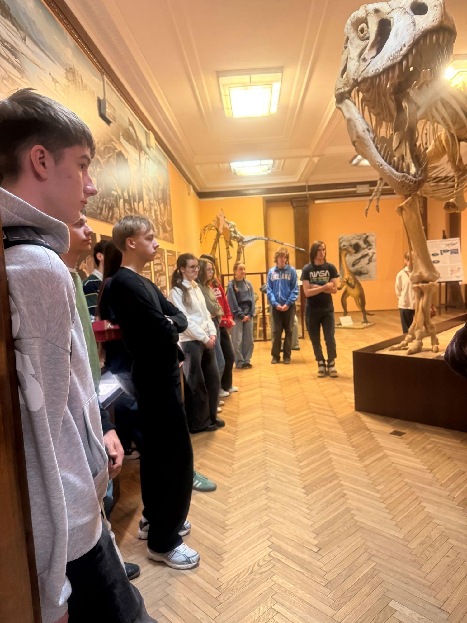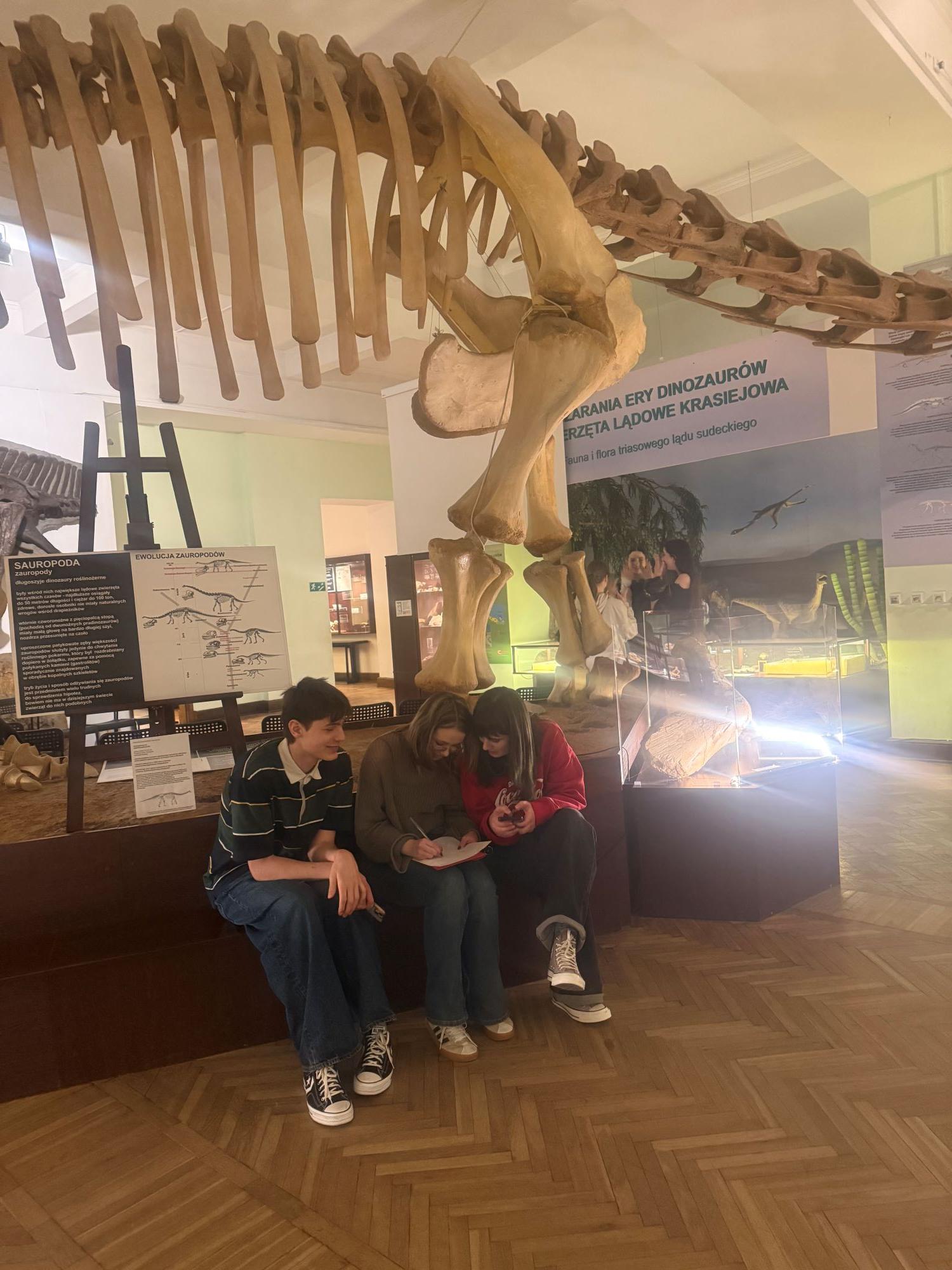 Głównym celem wycieczki było zgłębienie wiedzy na temat historii życia na Ziemi oraz poznanie mechanizmów ewolucji, które ukształtowały współczesną bioróżnorodność. Wyjście do muzeum miało charakter interdyscyplinarny – łączyło wiedzę z zakresu biologii i paleontologii z refleksją nad miejscem człowieka na świecie, co pozwoliło na szersze spojrzenie na procesy naturalne trwające miliony lat. Ostatnim punktem wycieczki było uzupełnienie karty pracy w 3-osobowych zespołach na podstawie eksponatów.
