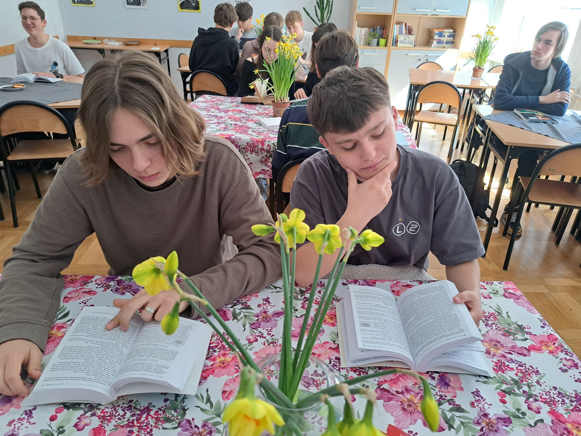 8 kwietnia sala lekcyjna prof. Anity Widman-Drzewieckiej zamieniła się w kawiarenkę literacką. Uczniowie w czasie lekcji mogli zapoznać się z wierszami poetów żydowskich tworzących w getcie.