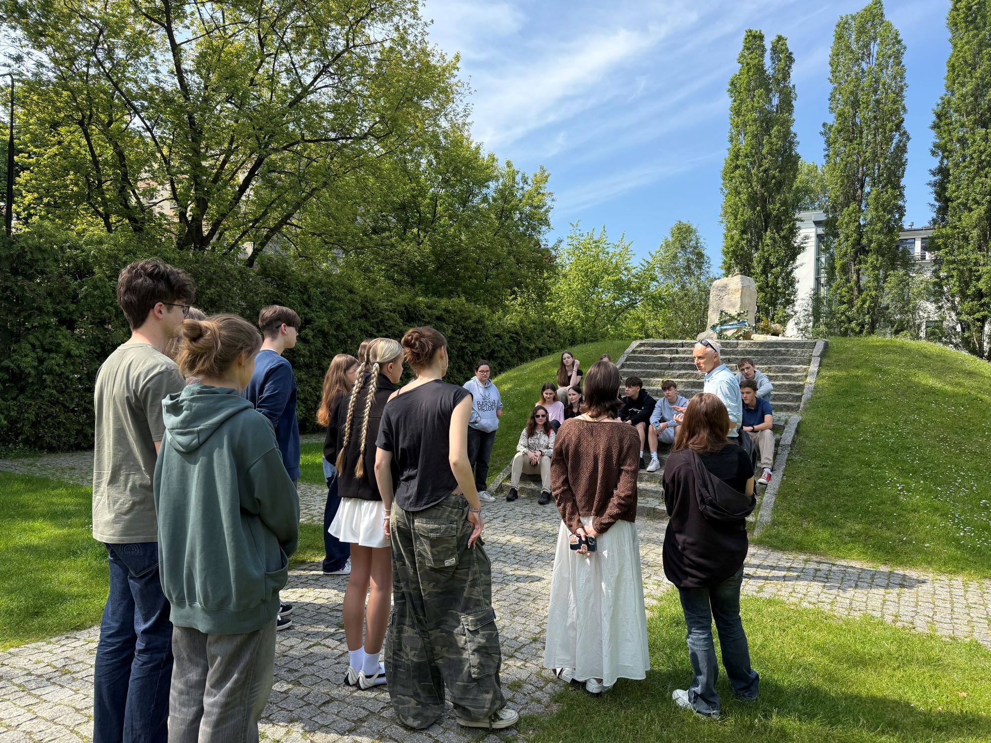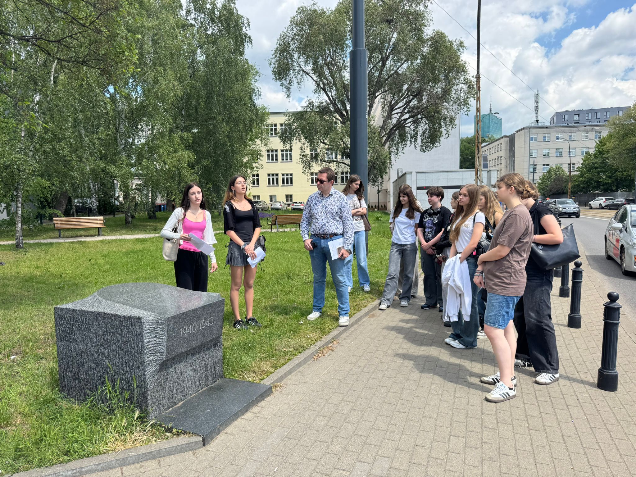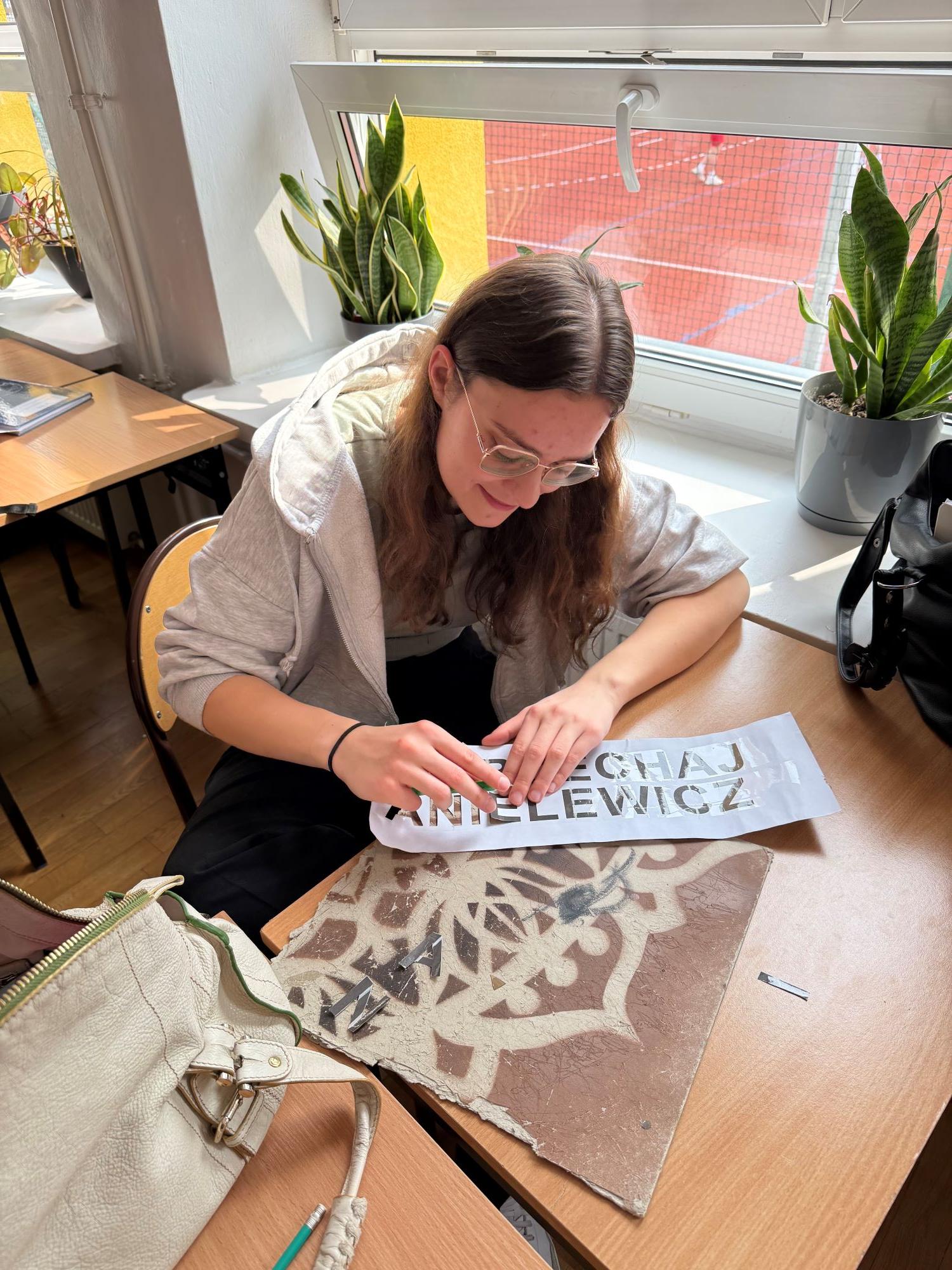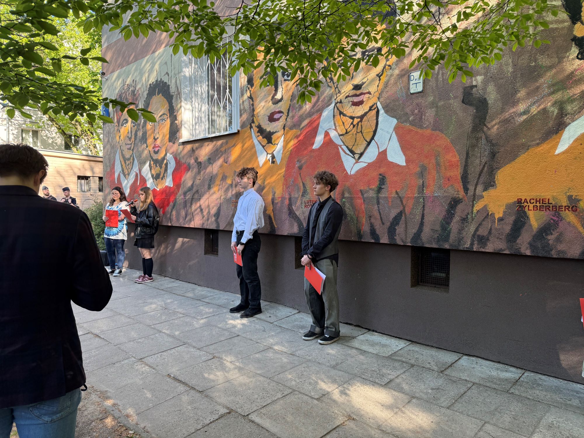 W kwietniu również uczniowie klasy 3D mieli okazję brać udział w warsztatach organizowanych przez Muzeum Getta Warszawskiego, których efektem było powstanie muralu upamiętniającego osoby, które zginęły w bunkrze Anielewicza.