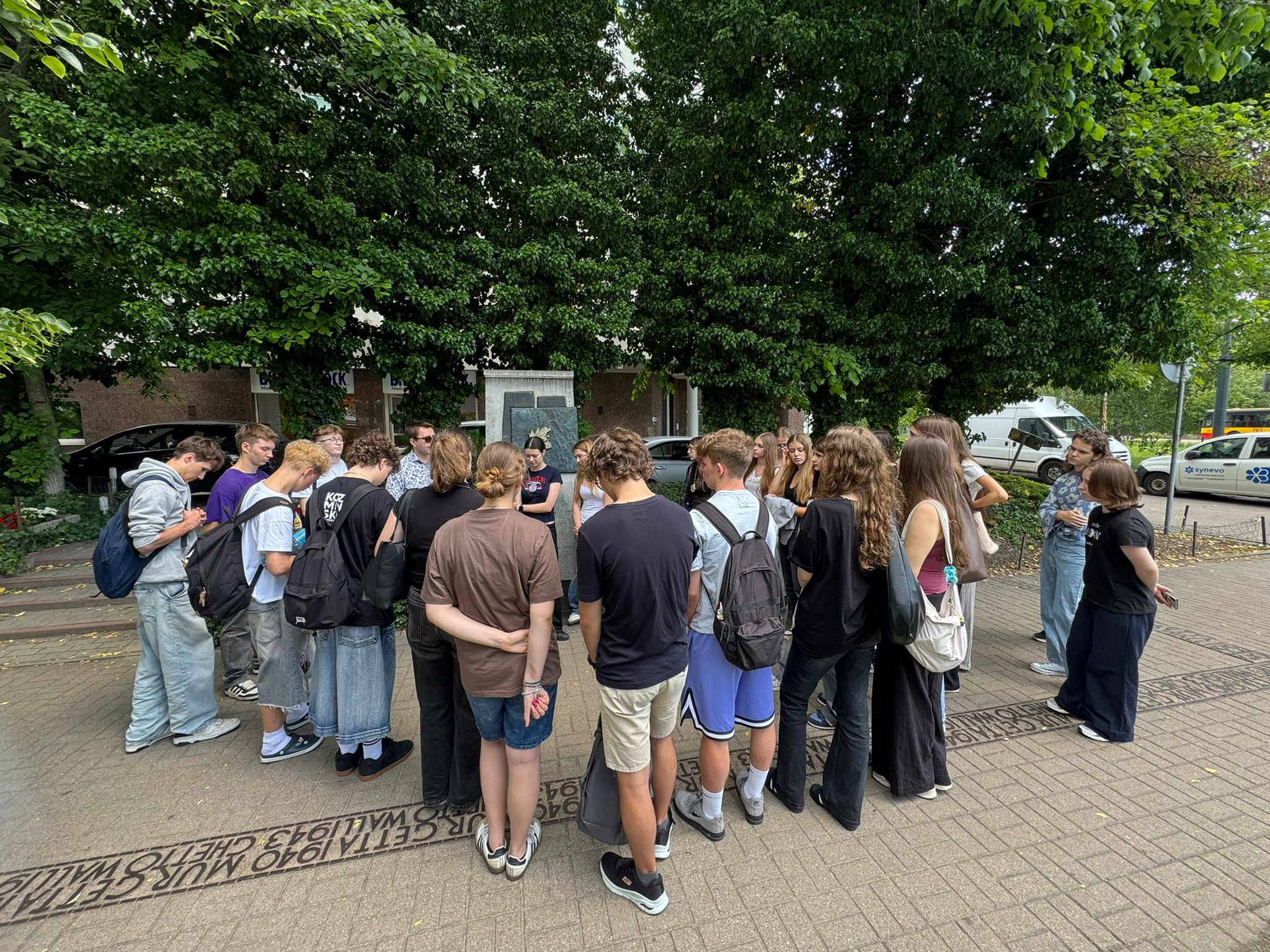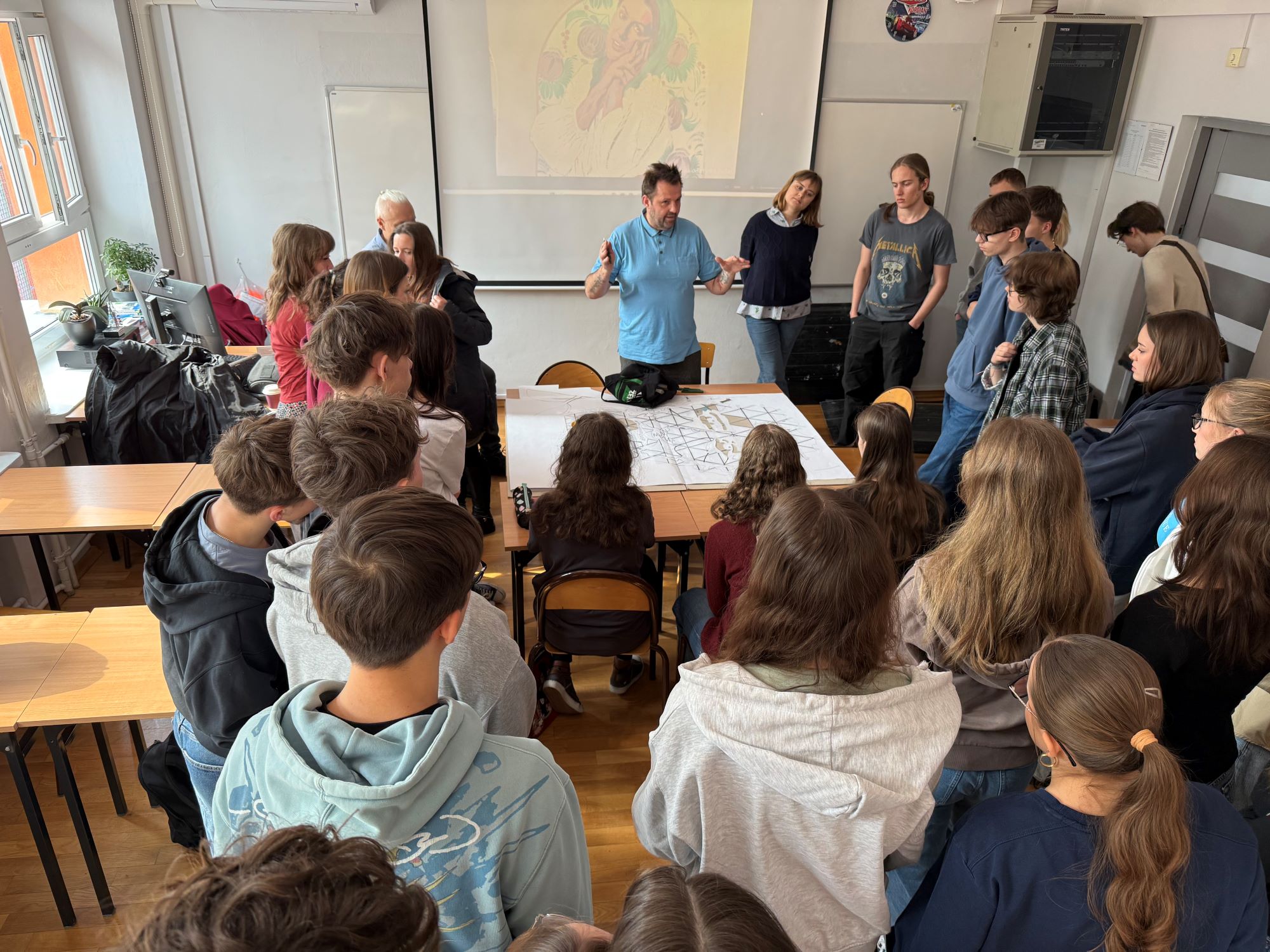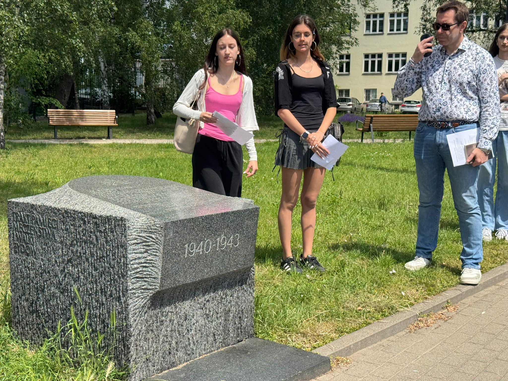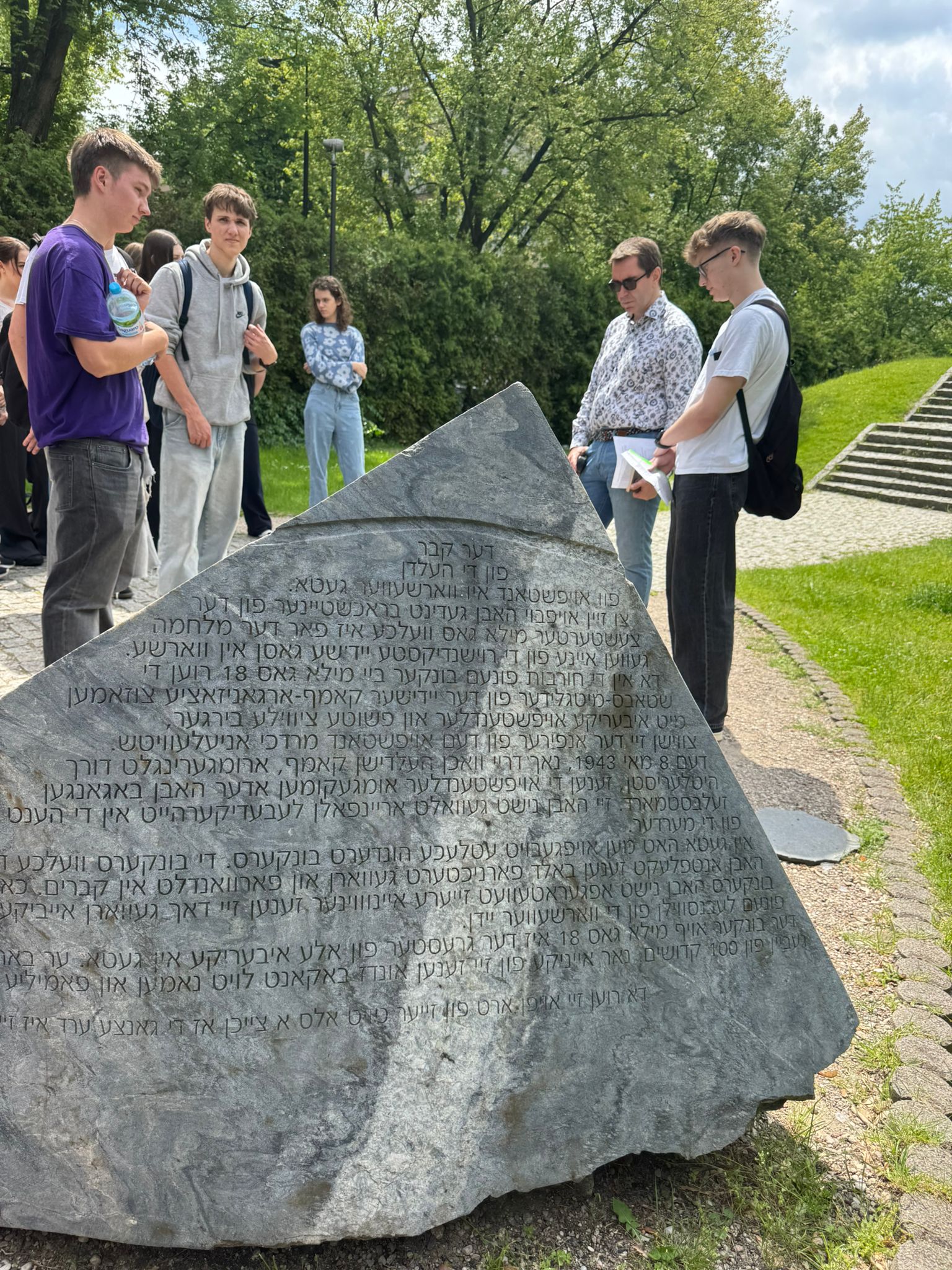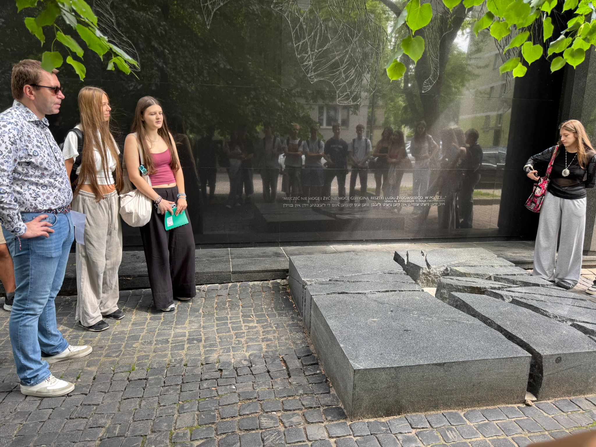 W kwietniu również uczniowie klasy 3D mieli okazję brać udział w warsztatach organizowanych przez Muzeum Getta Warszawskiego, których efektem było powstanie muralu upamiętniającego osoby, które zginęły w bunkrze Anielewicza.