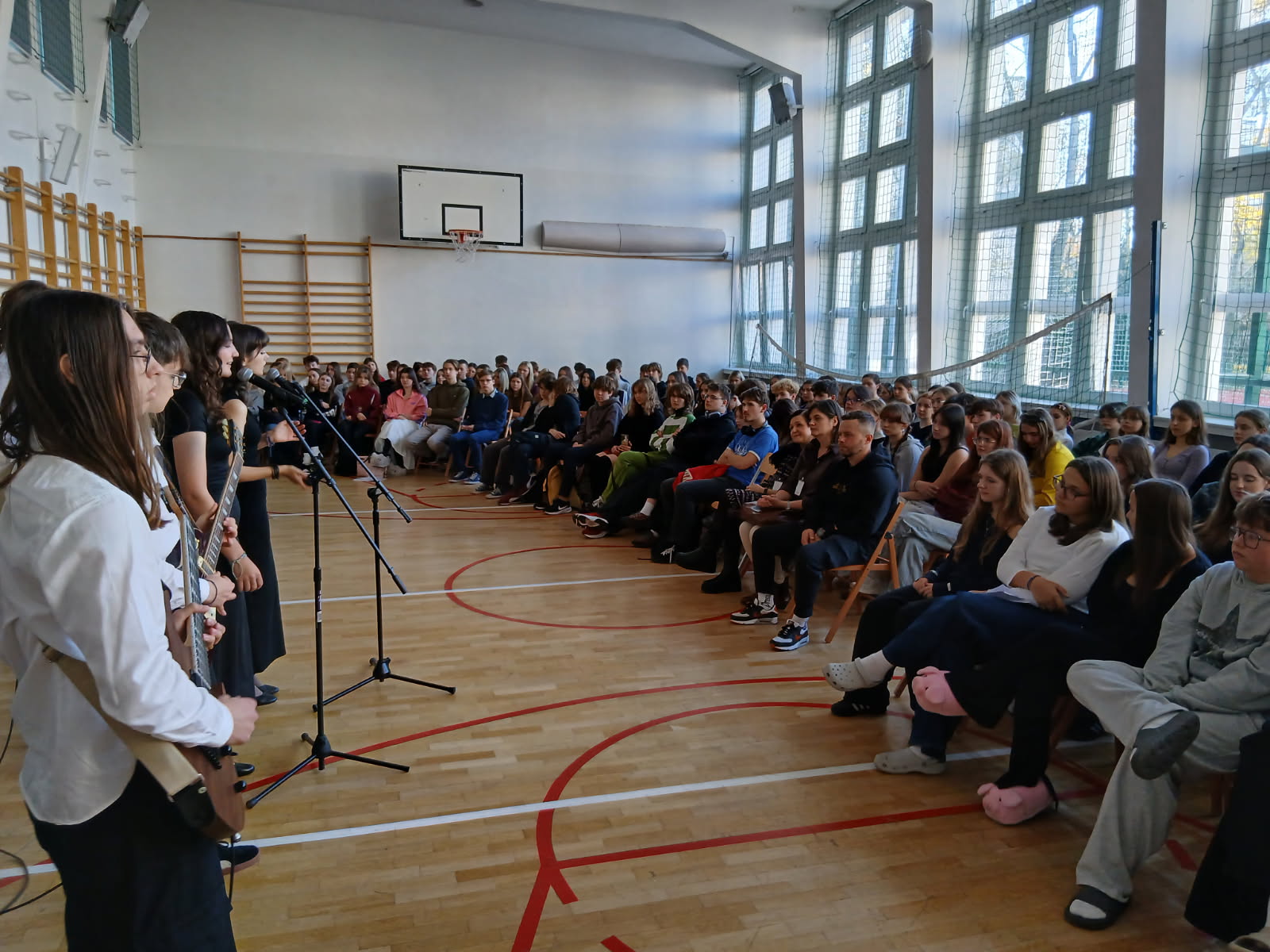 To pierwszy akt naszego koncertu. W drugim przywołaliśmy pamięć nauczycieli i pracowników Liceum. Niektórzy z nich, jak pani profesor Małgorzata Pietrzak czy pan profesor Tomasz Wierzchowski odeszli bardzo niespodziewanie, z dnia na dzień, w czasie wykonywania swoich zawodowych obowiązków.