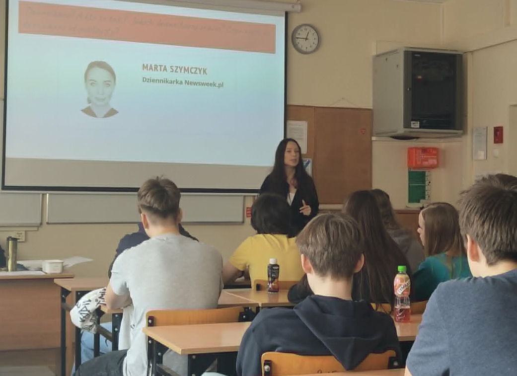 W marcu uczniowie klas pierwszych i drugich wzięli udział w warsztatach na temat Krytycznej analizy treści online poprowadzonych przez dziennikarzy polskich mediów, w ramach projektu organizacji Lie Detectors.
