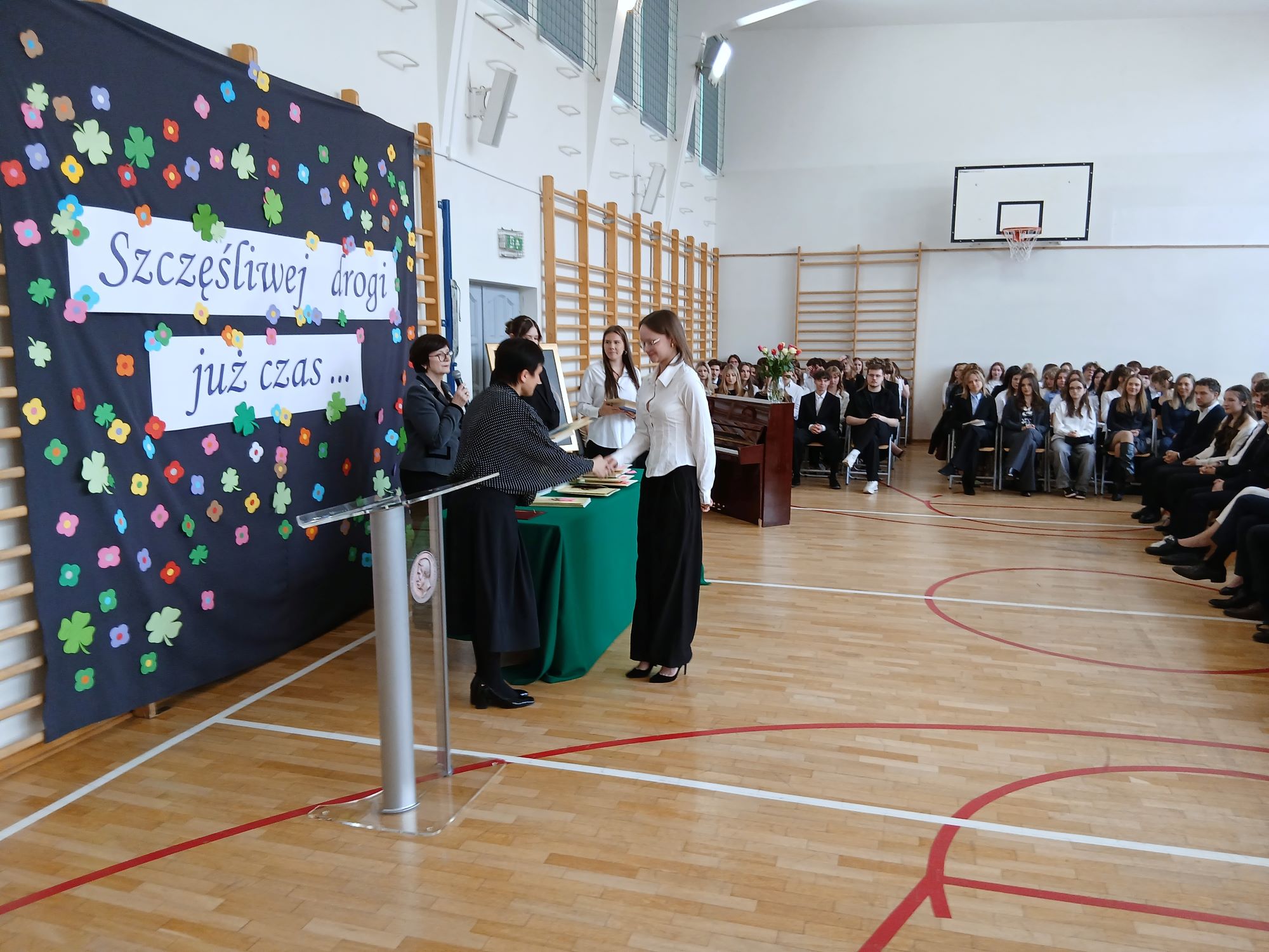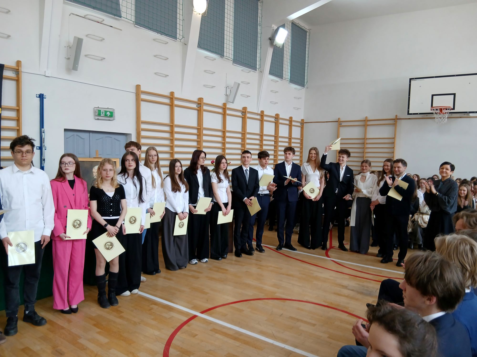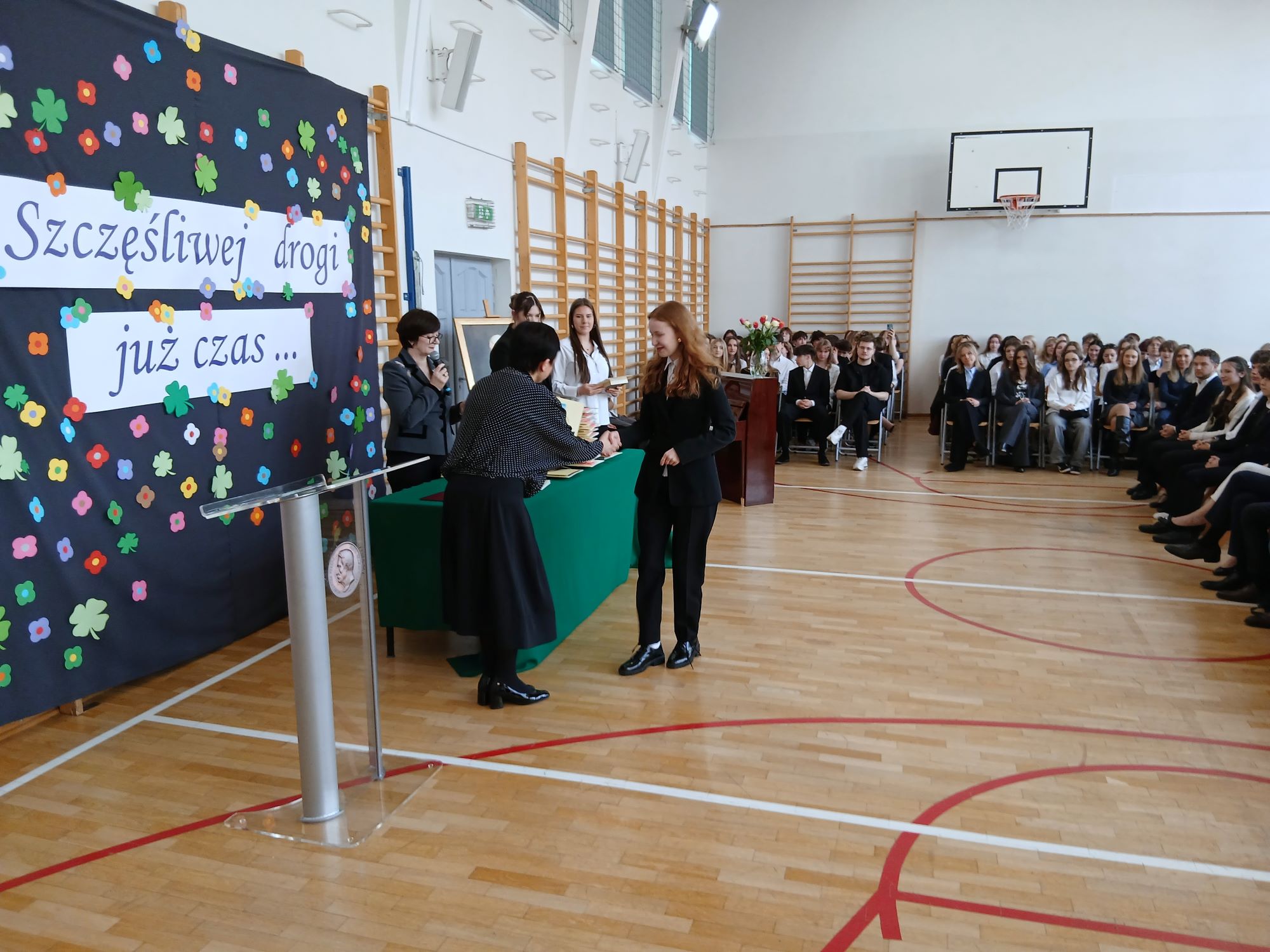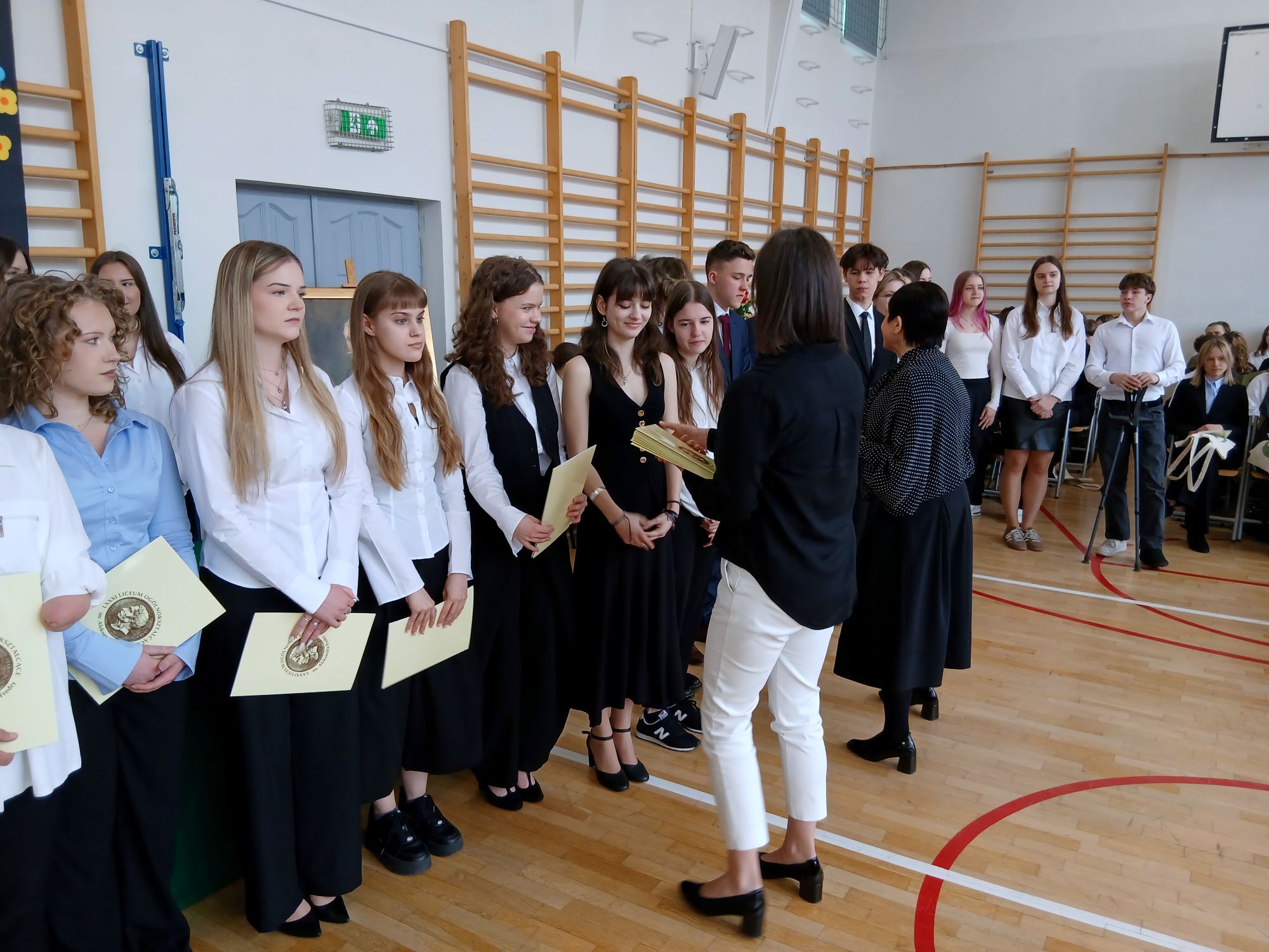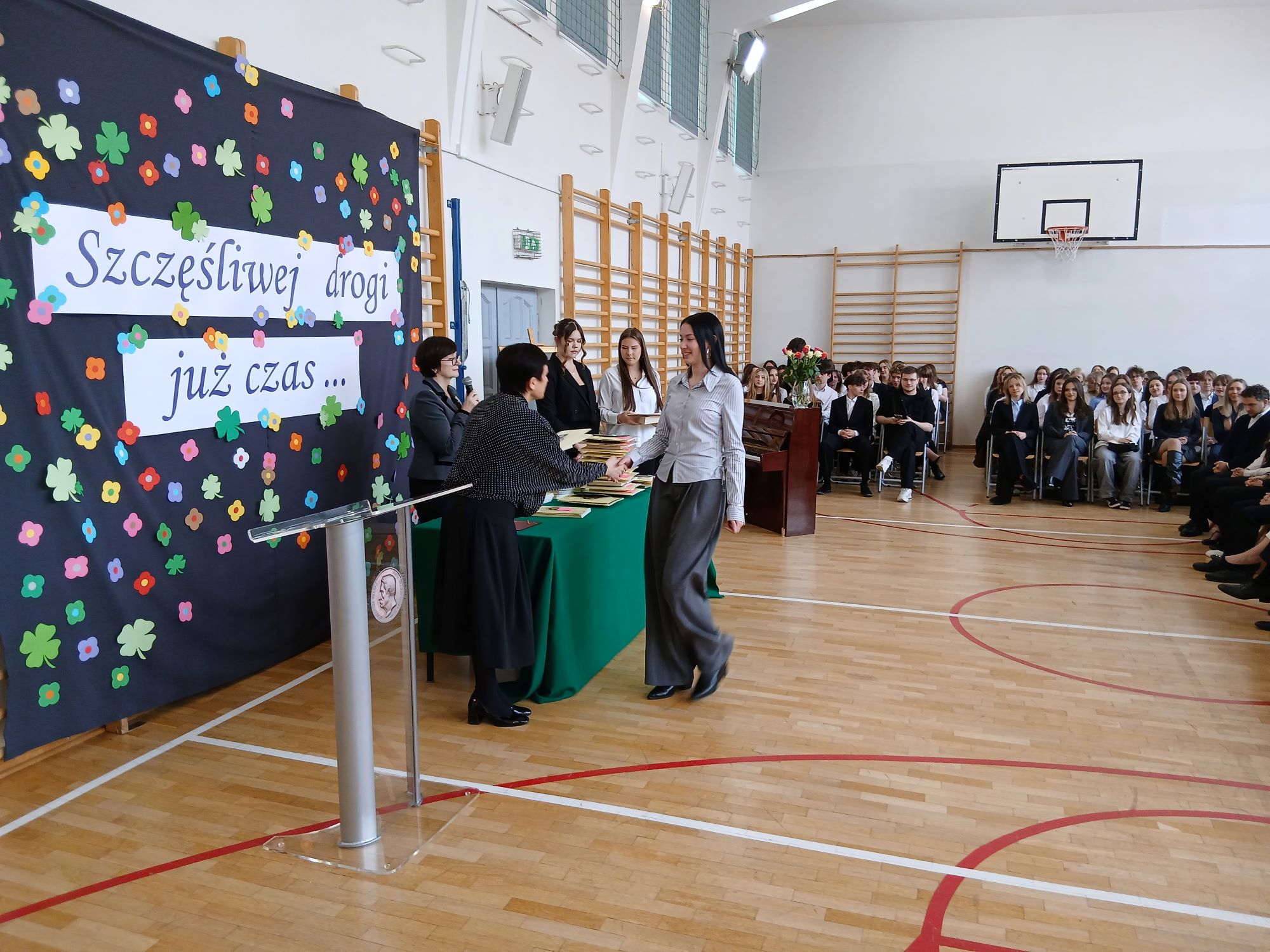 W piątek 24 kwietnia punktualnie o godzinie 9.00 rozpoczęła się uroczystość wręczenia świadectw ukończenia szkoły uczniom Klas Czwartych. Tym samym kolejny rocznik zakończył swoją przygodę z LXXXI LO im. A. Fredry w Warszawie. Tradycyjnie słowa podziękowań do Maturzystów skierowała pani dyrektor Joanna Kaleta-Szabłowska. W swoim wystąpieniu Pani Dyrektor przypomniała wszelkie sukcesy jakie były udziałem naszych Absolwentów na przestrzeni ostatnich lat, podziękowała za trud pracy, którą wykonywali Maturzyści pod okiem swoich Nauczycieli i Rodziców i zaprosiła na tradycyjny Zjazd Absolwentów, bo to tego zacnego grona dołączył dziś rocznik 2026'. Cytując Herberta Pani Dyrektor życzyła też wszystkim odwagi w mierzeniu się z życiem i wyzwaniami jakie nieść będzie los.