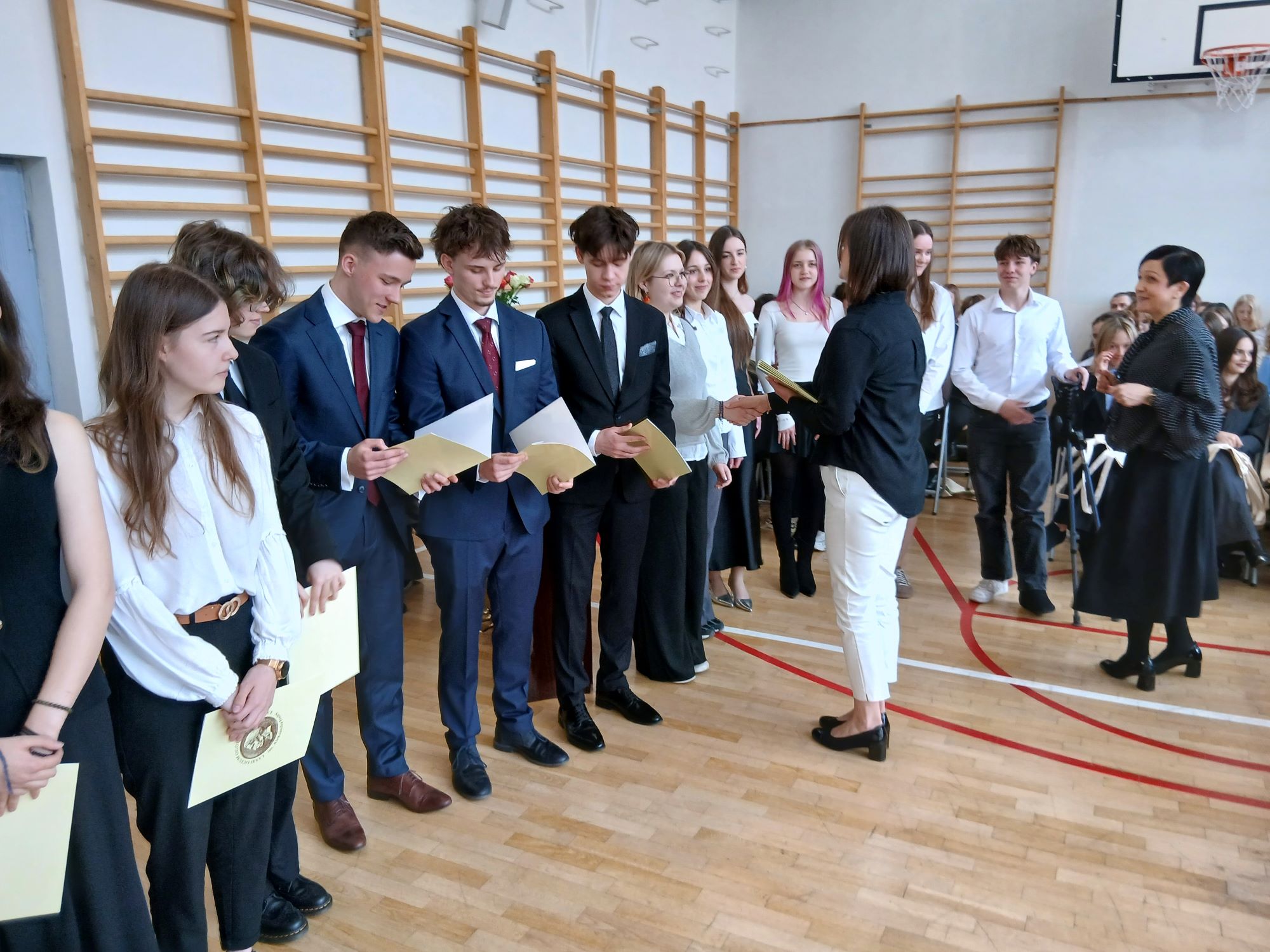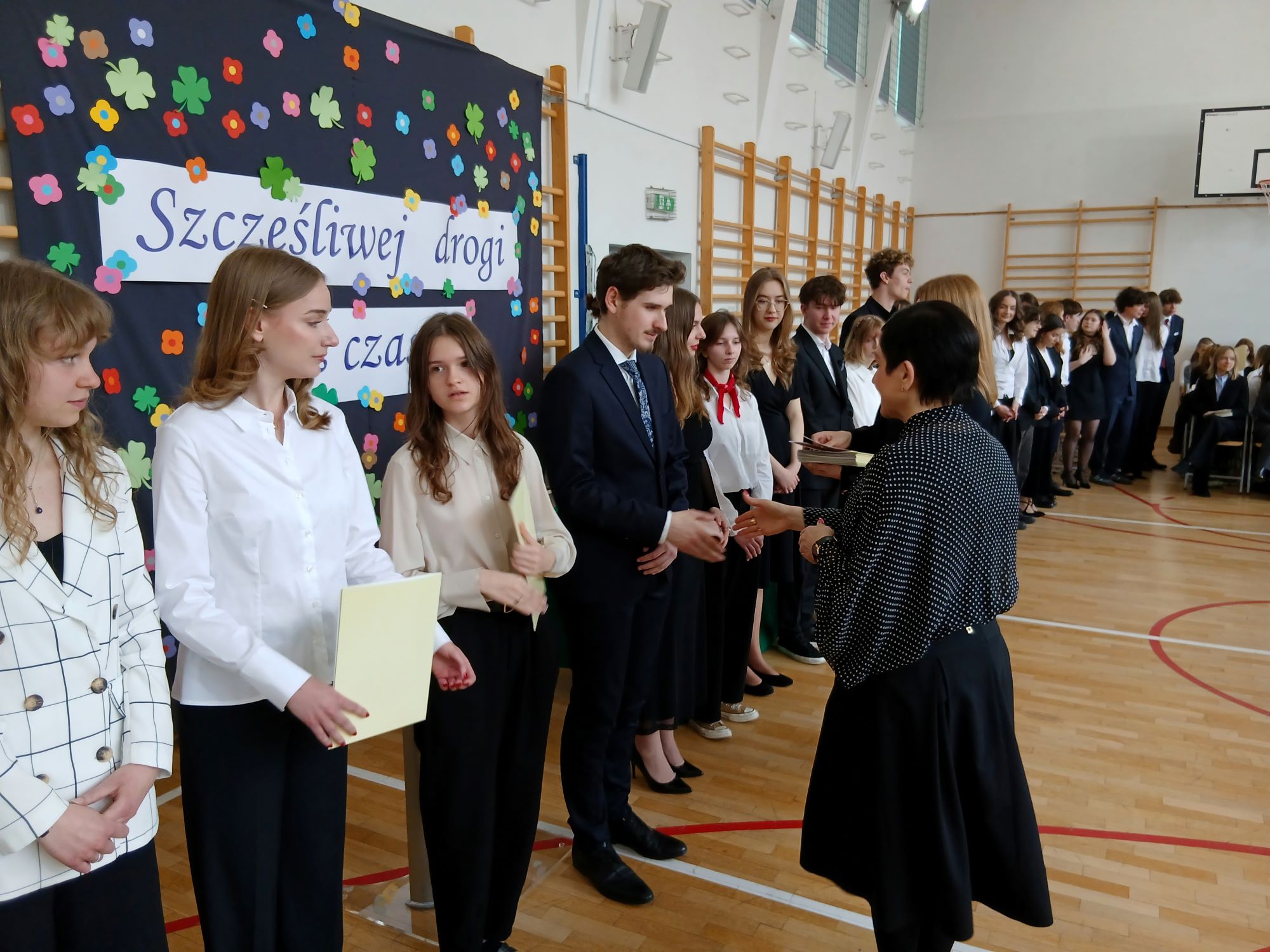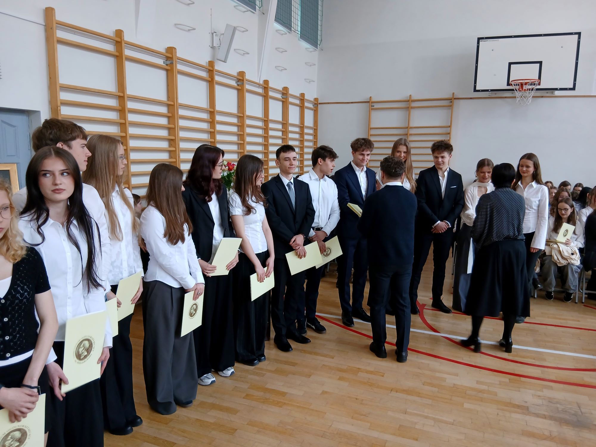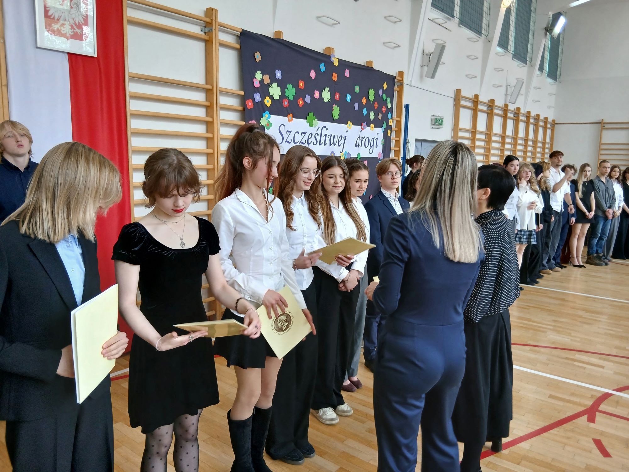 W piątek 24 kwietnia punktualnie o godzinie 9.00 rozpoczęła się uroczystość wręczenia świadectw ukończenia szkoły uczniom Klas Czwartych. Tym samym kolejny rocznik zakończył swoją przygodę z LXXXI LO im. A. Fredry w Warszawie. Tradycyjnie słowa podziękowań do Maturzystów skierowała pani dyrektor Joanna Kaleta-Szabłowska. W swoim wystąpieniu Pani Dyrektor przypomniała wszelkie sukcesy jakie były udziałem naszych Absolwentów na przestrzeni ostatnich lat, podziękowała za trud pracy, którą wykonywali Maturzyści pod okiem swoich Nauczycieli i Rodziców i zaprosiła na tradycyjny Zjazd Absolwentów, bo to tego zacnego grona dołączył dziś rocznik 2026'. Cytując Herberta Pani Dyrektor życzyła też wszystkim odwagi w mierzeniu się z życiem i wyzwaniami jakie nieść będzie los.