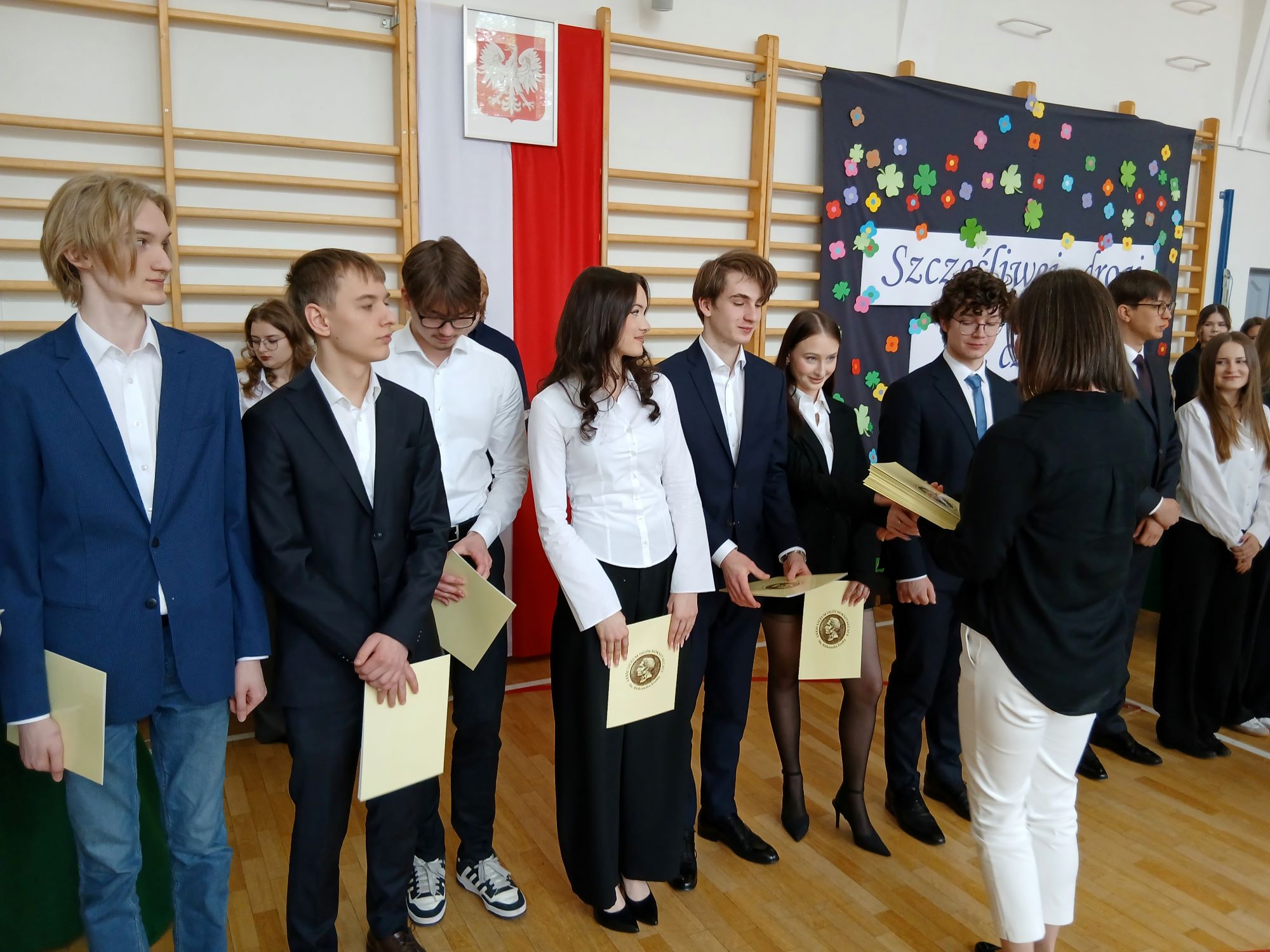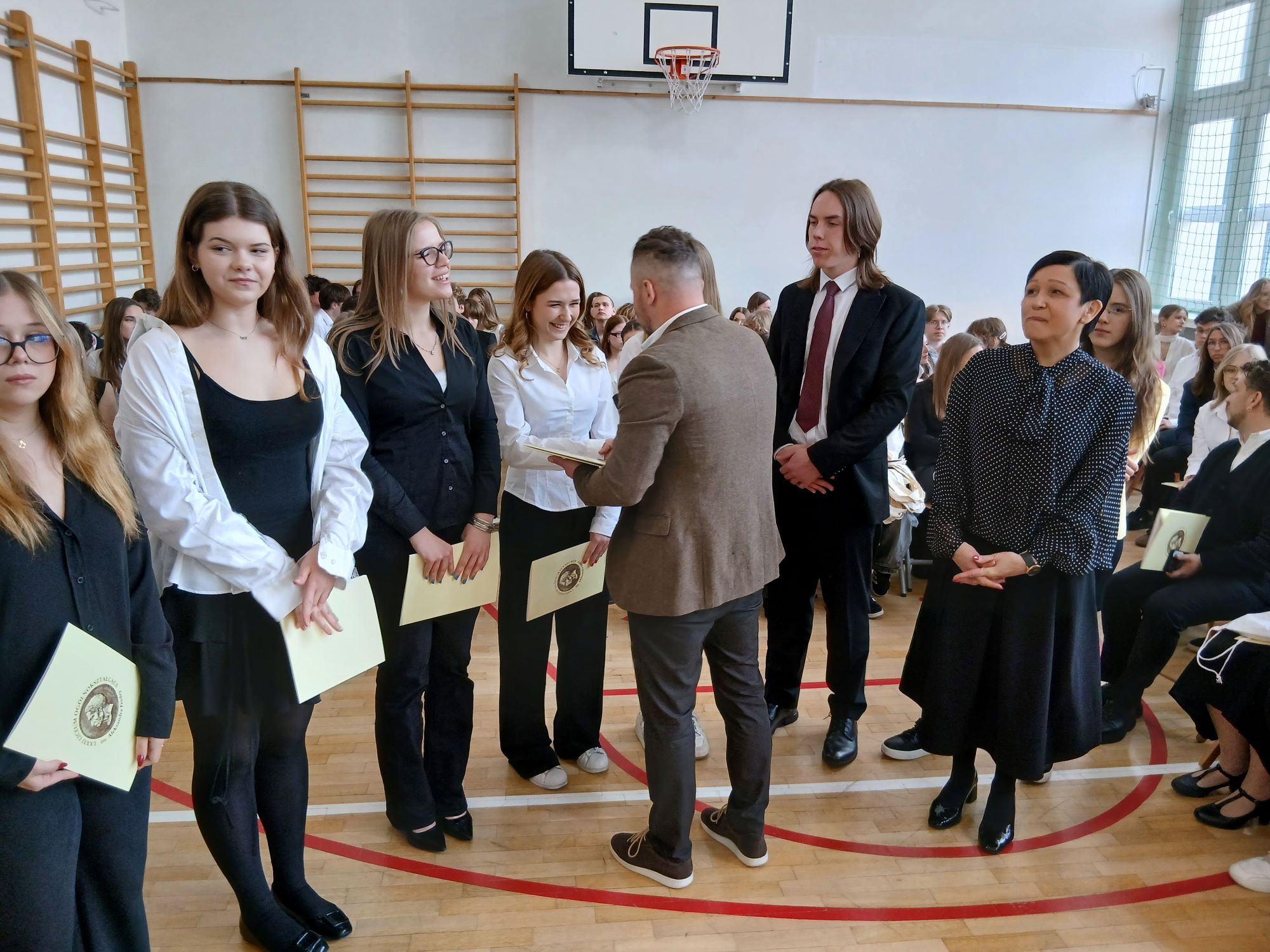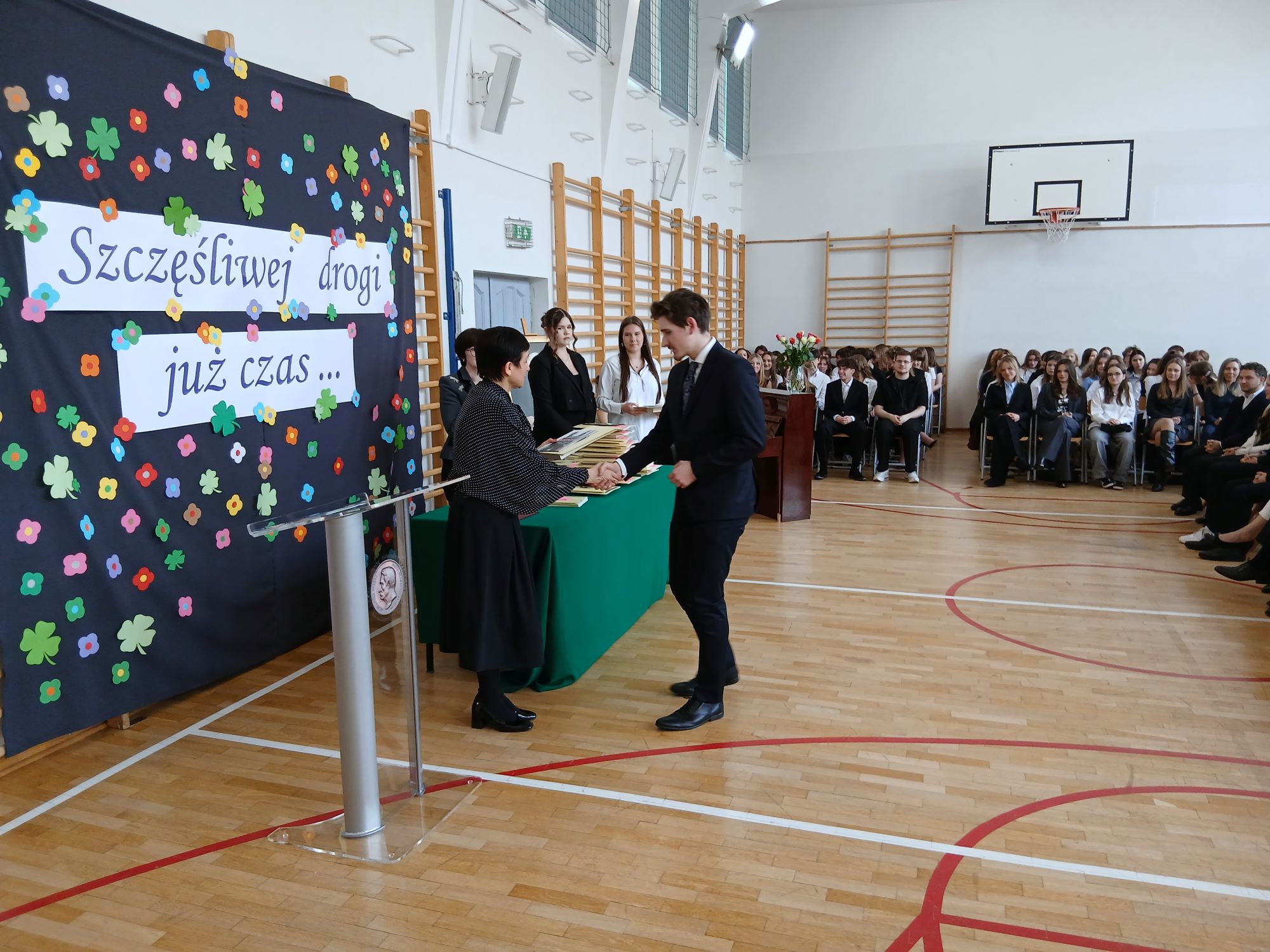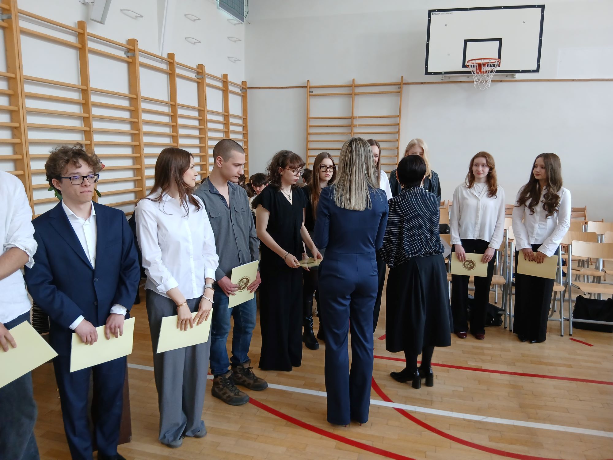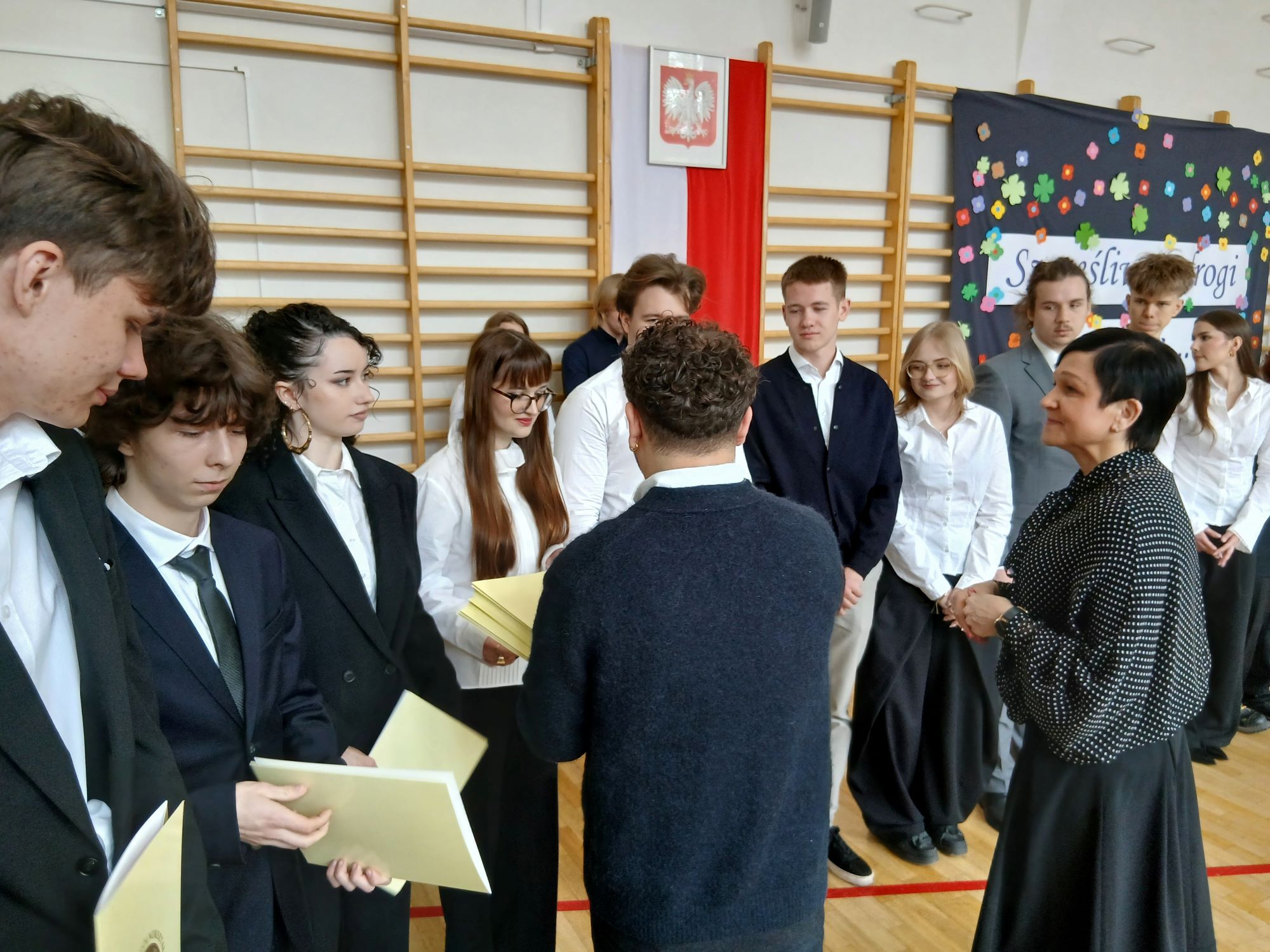 W piątek 24 kwietnia punktualnie o godzinie 9.00 rozpoczęła się uroczystość wręczenia świadectw ukończenia szkoły uczniom Klas Czwartych. Tym samym kolejny rocznik zakończył swoją przygodę z LXXXI LO im. A. Fredry w Warszawie. Tradycyjnie słowa podziękowań do Maturzystów skierowała pani dyrektor Joanna Kaleta-Szabłowska. W swoim wystąpieniu Pani Dyrektor przypomniała wszelkie sukcesy jakie były udziałem naszych Absolwentów na przestrzeni ostatnich lat, podziękowała za trud pracy, którą wykonywali Maturzyści pod okiem swoich Nauczycieli i Rodziców i zaprosiła na tradycyjny Zjazd Absolwentów, bo to tego zacnego grona dołączył dziś rocznik 2026'. Cytując Herberta Pani Dyrektor życzyła też wszystkim odwagi w mierzeniu się z życiem i wyzwaniami jakie nieść będzie los.