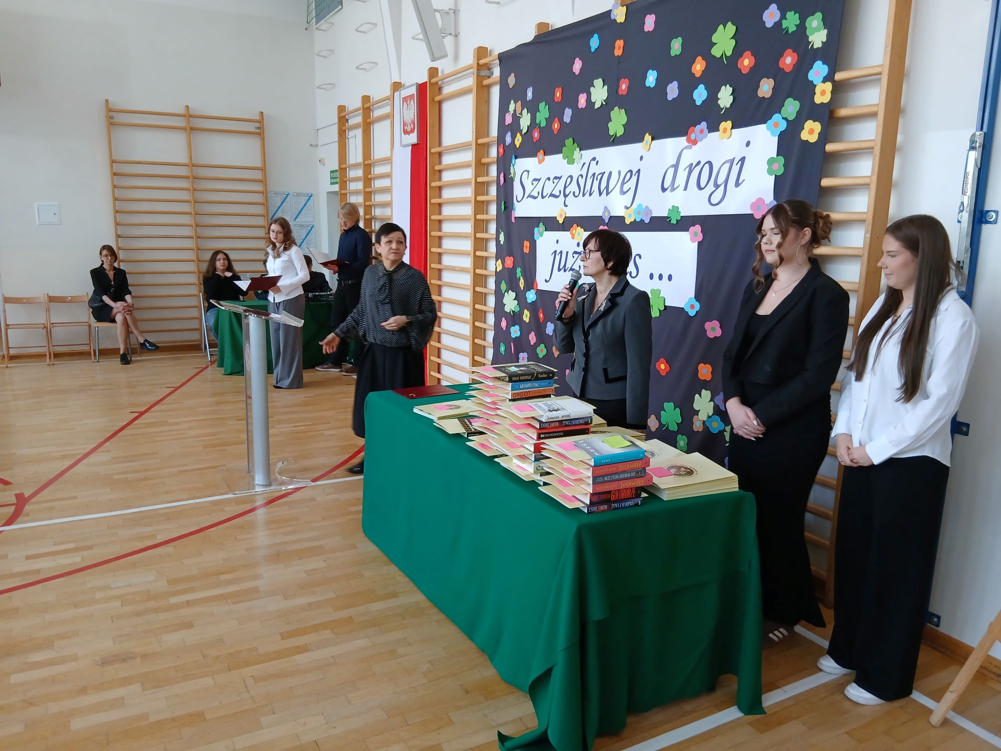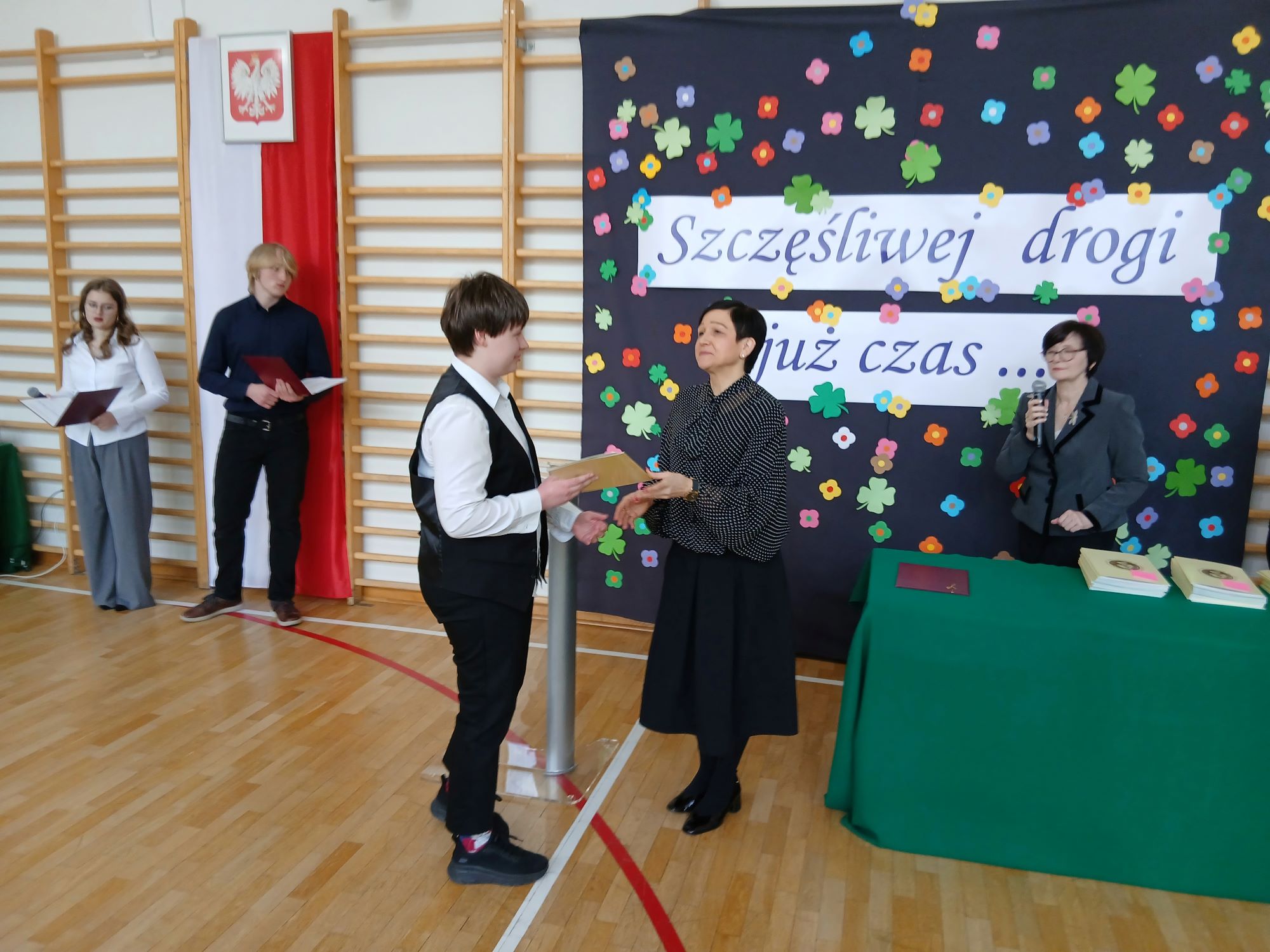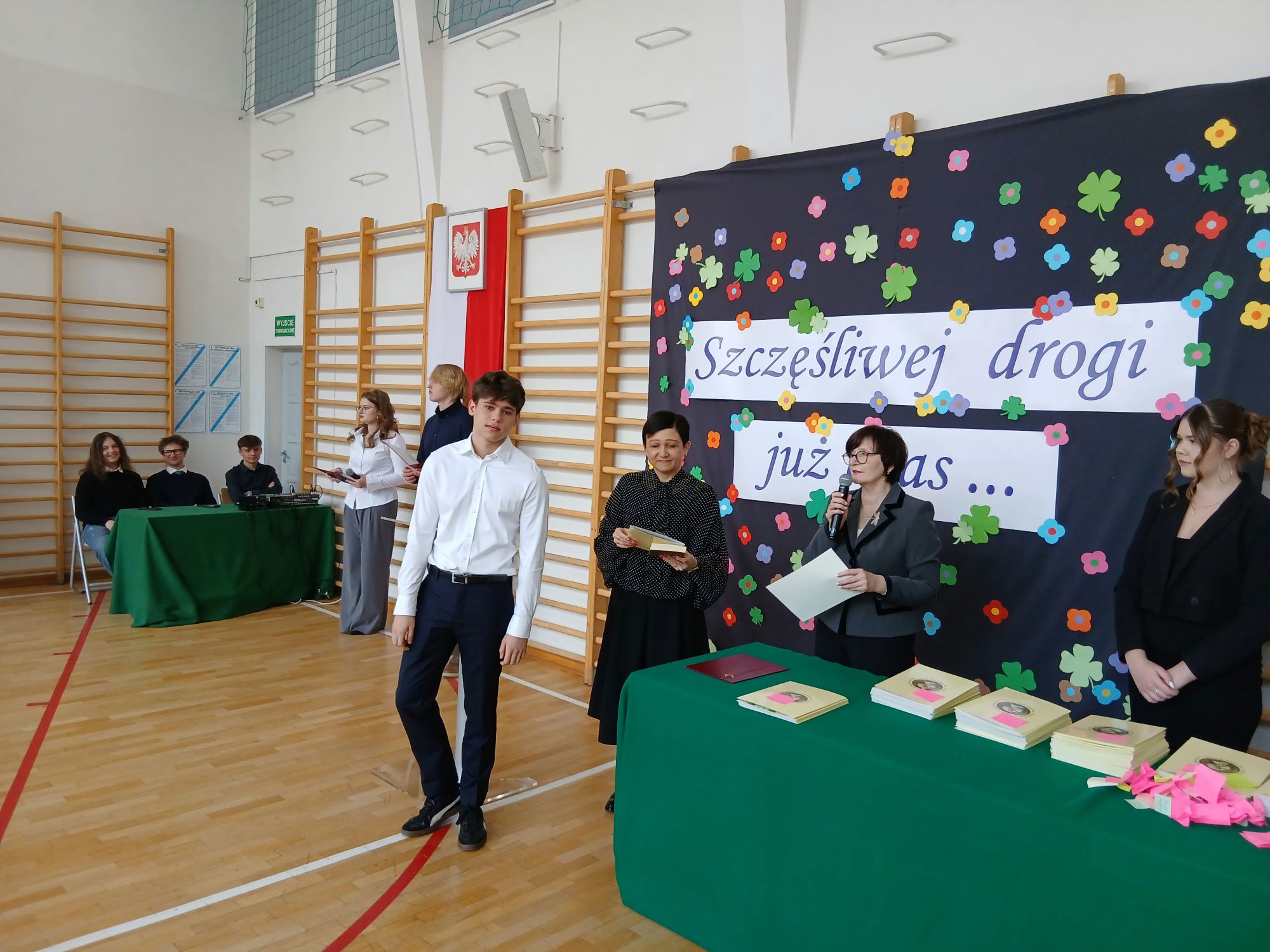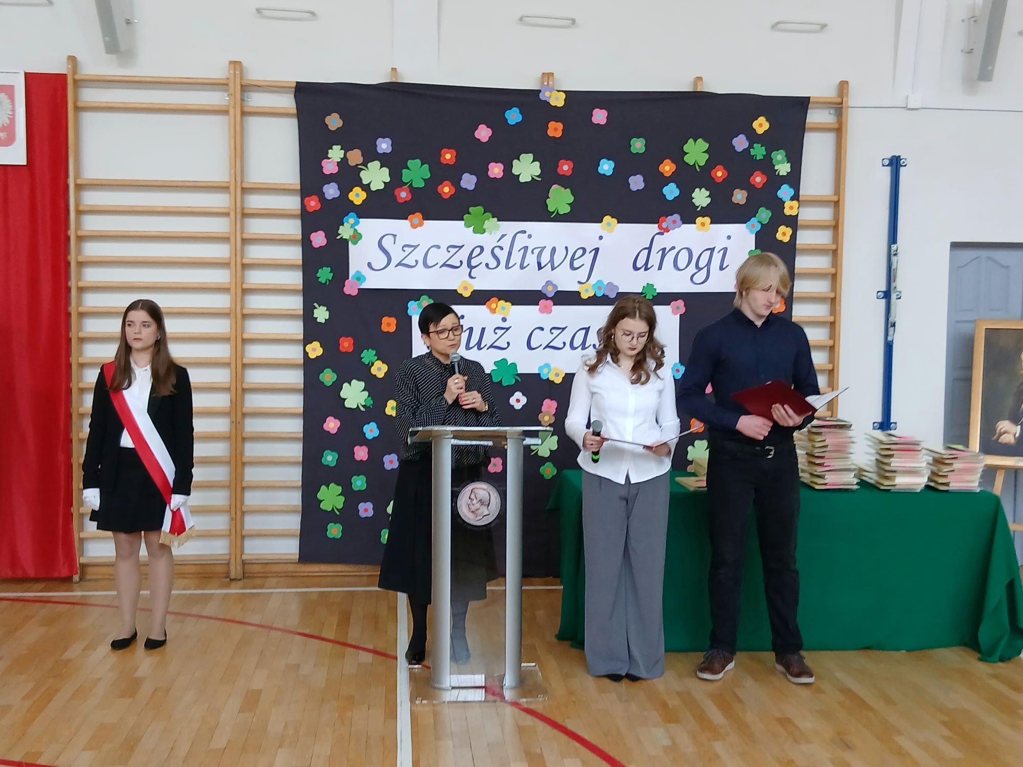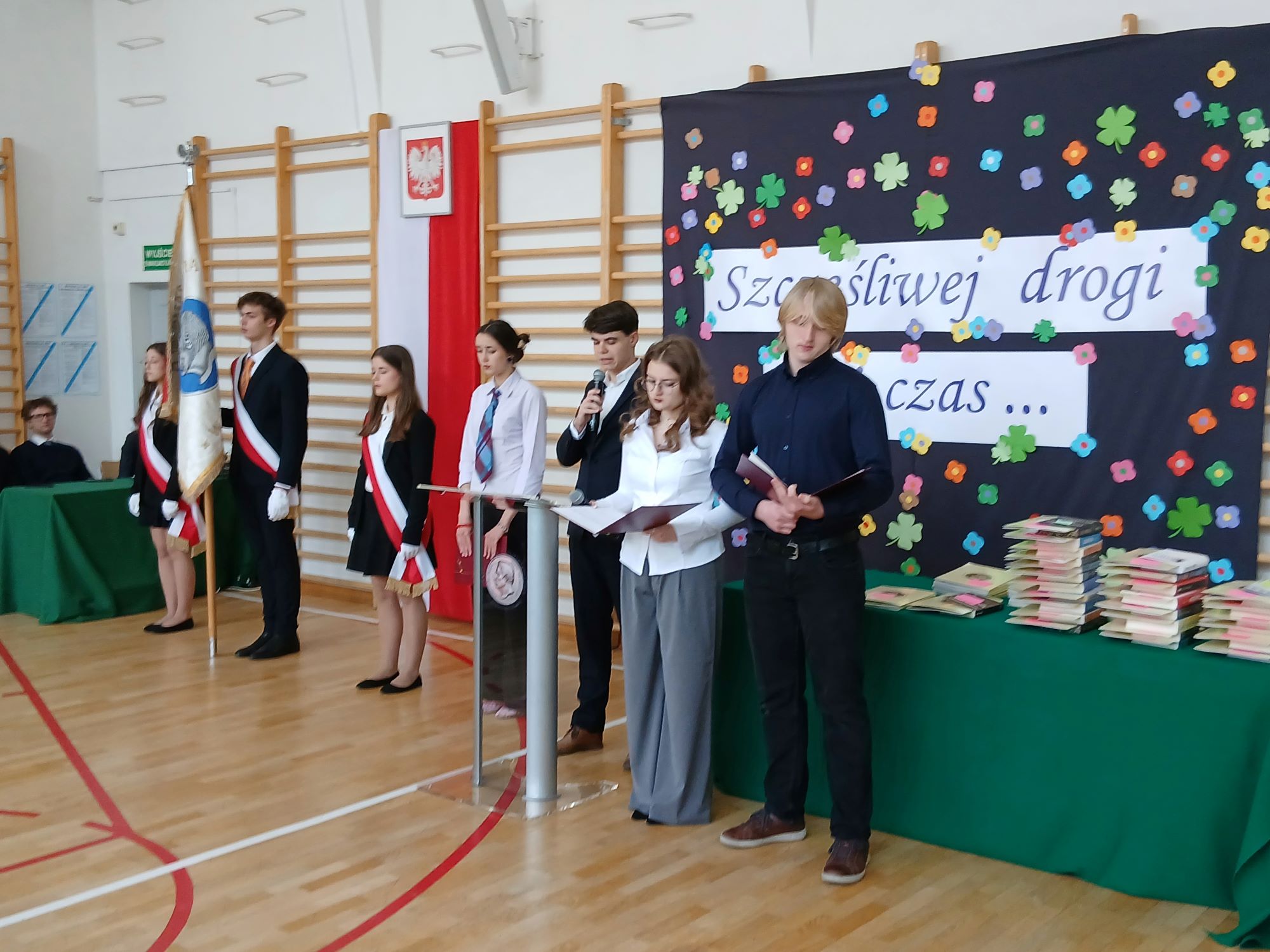 Słowa podziękowań do Absolwentów skierowali również przedstawiciele Samorządu Uczniowskiego, którzy nie zapomnieli również o fredrowskich upominkach.