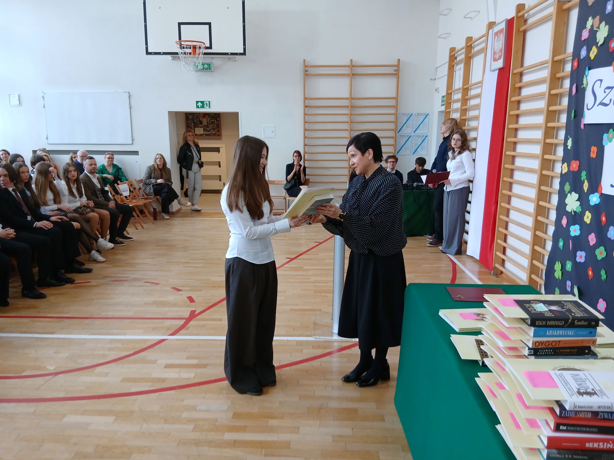 Niemniej najważniejszym momentem uroczystości było wręczenie świadectw ukończenia Liceum. Pani dyrektor Joanna Kaleta-Szabłowska i pani wicedytrektor Mariola Boryn wręczyły najpierw świadectwa z wyróżnieniem, doceniając osiągnięcia naukowe naszych Absolwentów. Dla najlepszych z najlepszych Rada Rodziców ufundowała specjalne stypendia i nagrody książkowe.