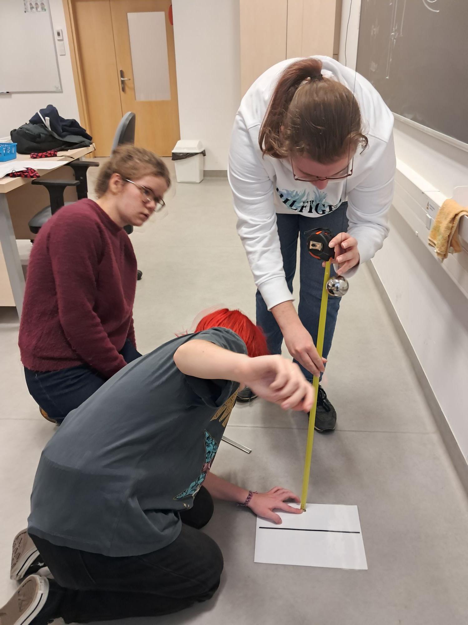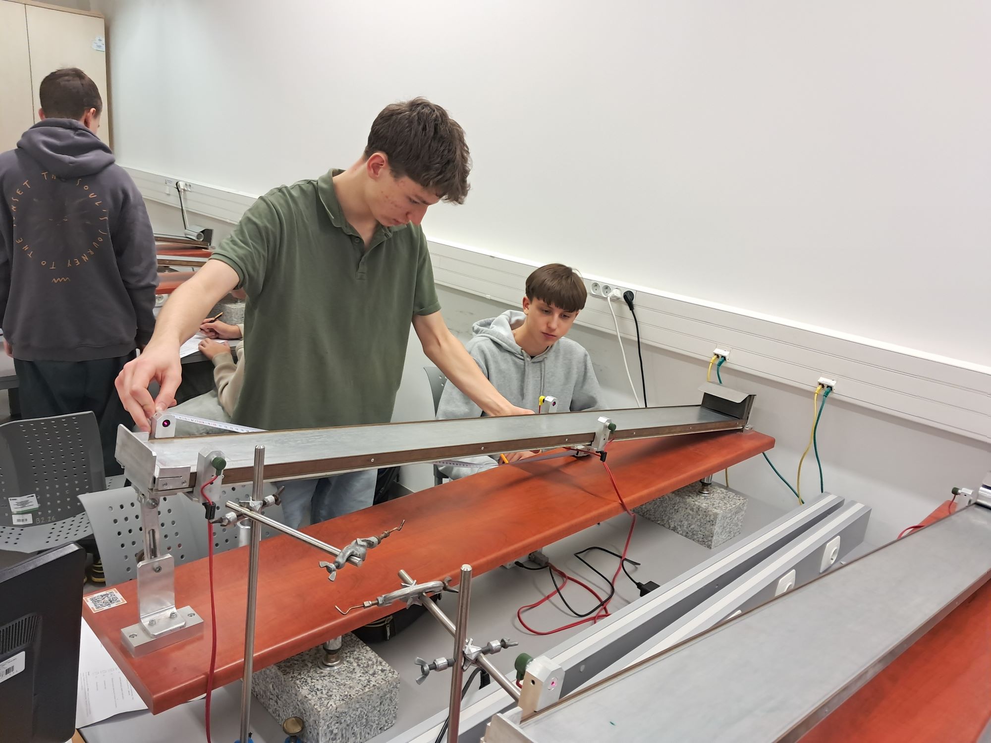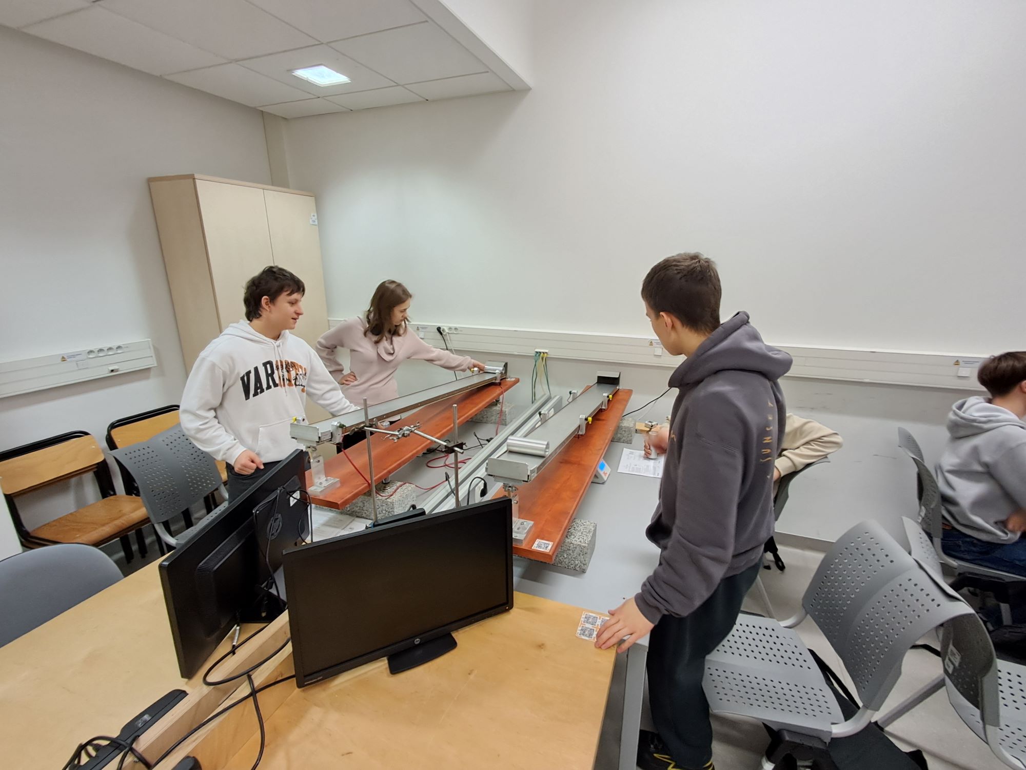 A dwie pozostałe grupy sprawdzały w jaki sposób okres wahadła zależy od jego długości oraz że nie zależy od początkowego wychylenia wahadła. Ostatecznie wyznaczały przyspieszenie ziemskie poprzez wyznaczenie okresu drgań wahadła matematycznego.
