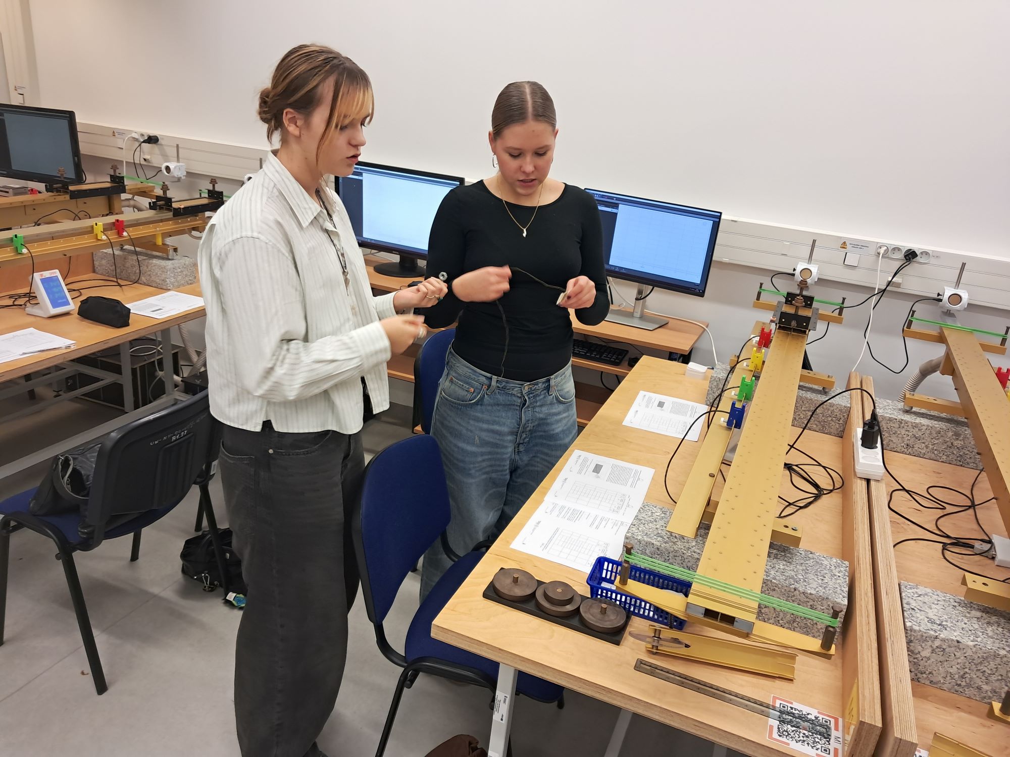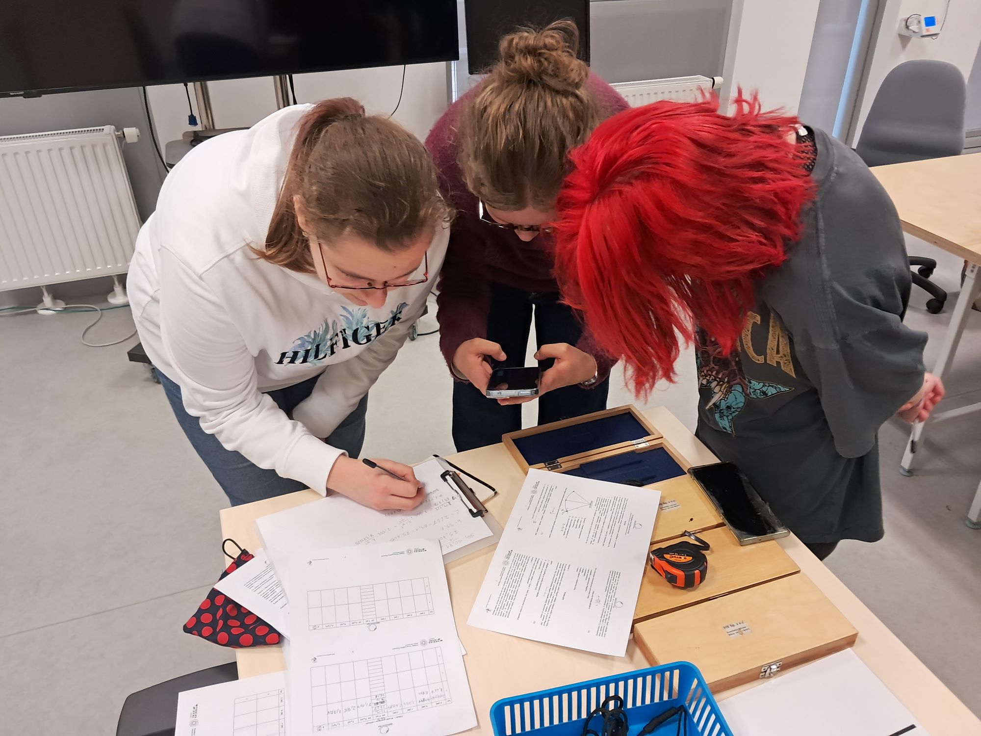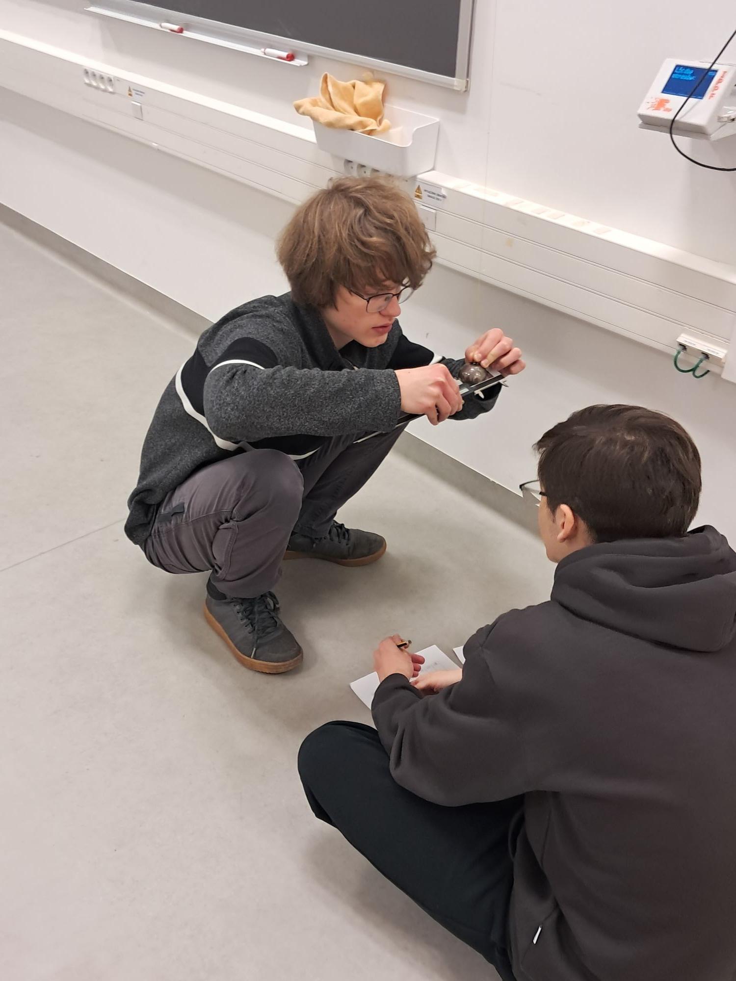 A dwie pozostałe grupy sprawdzały w jaki sposób okres wahadła zależy od jego długości oraz że nie zależy od początkowego wychylenia wahadła. Ostatecznie wyznaczały przyspieszenie ziemskie poprzez wyznaczenie okresu drgań wahadła matematycznego.