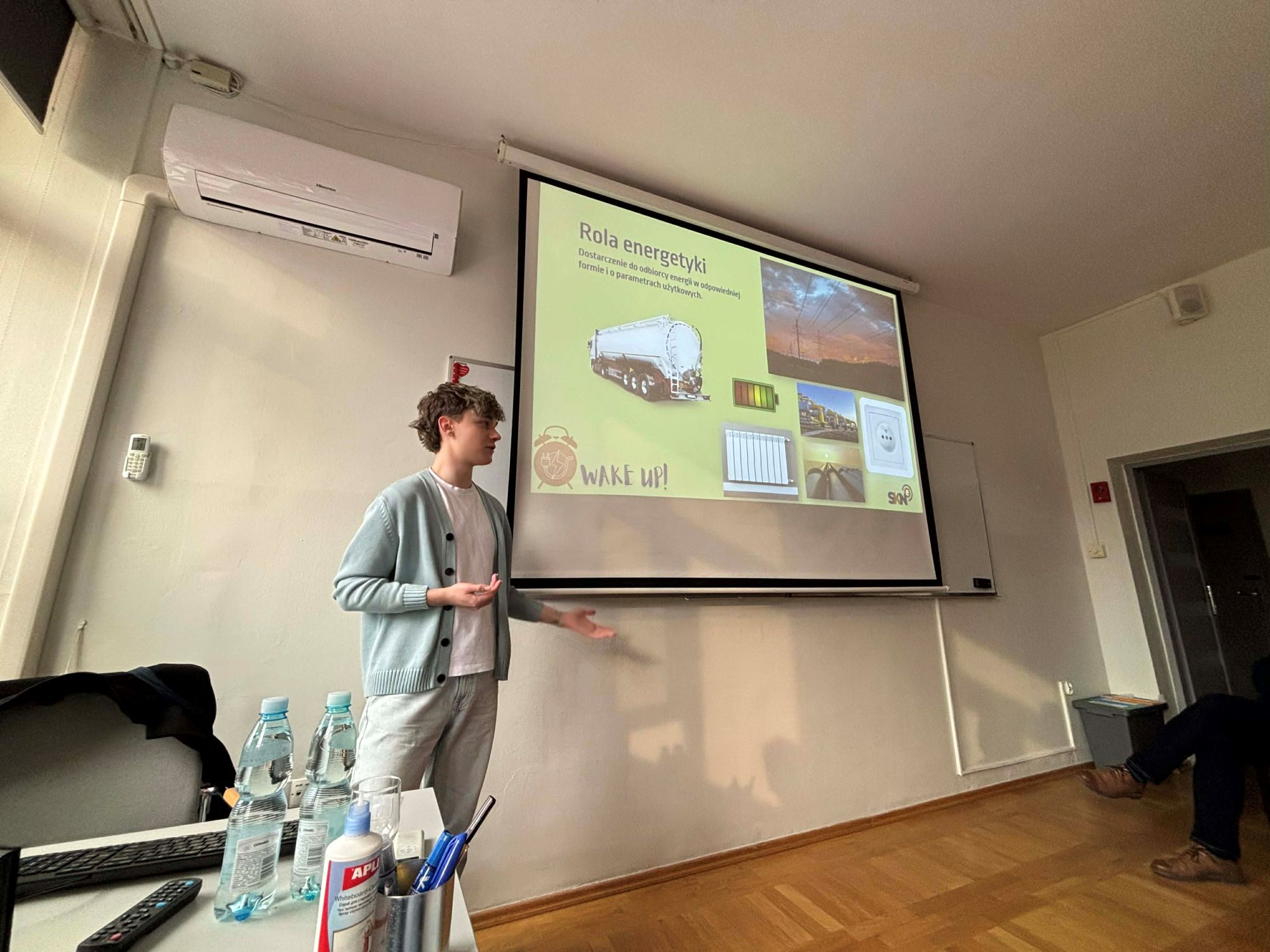 Podczas spotkania w przystępny sposób zostały przybliżone uczniom zagadnienia związane z budową i działaniem elektrowni jądrowych. Mateusz opowiedział również o uranie - jego występowaniu, procesie wydobycia oraz roli, jaką odgrywa w produkcji energii. Nie zabrakło także tematów związanych z codziennym życiem studenta, co spotkało się z dużym zainteresowaniem słuchaczy.